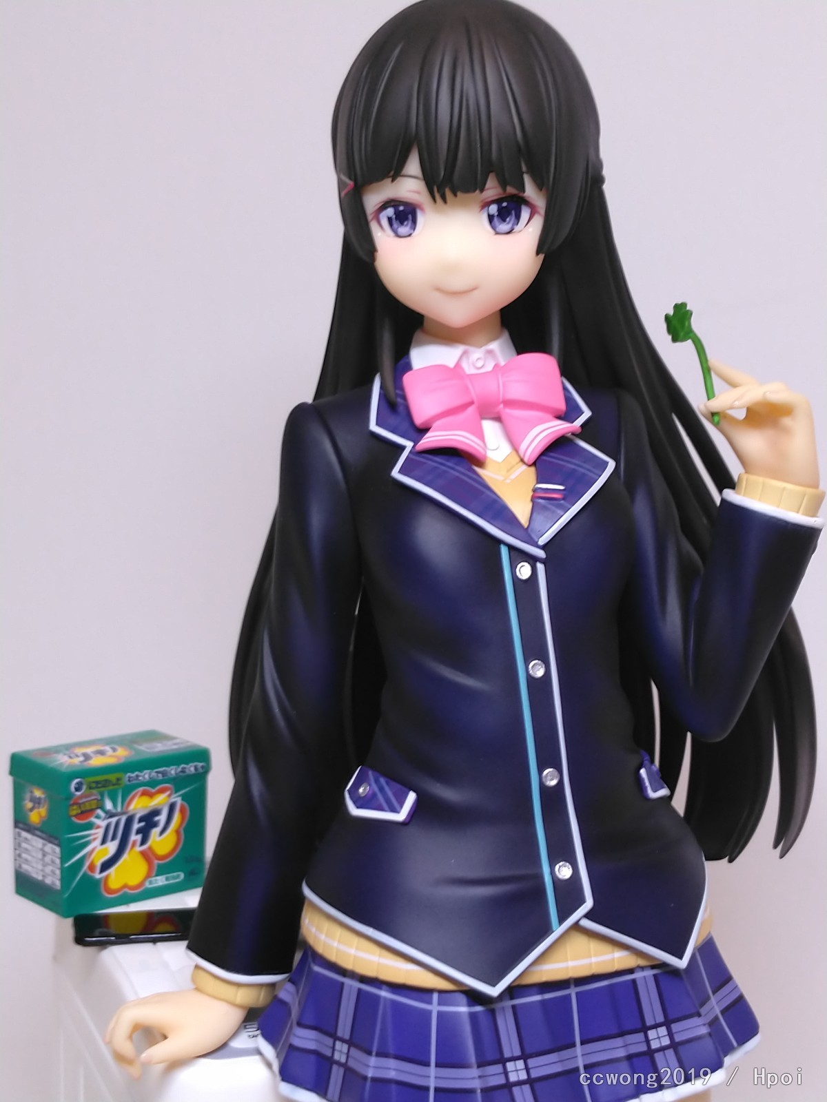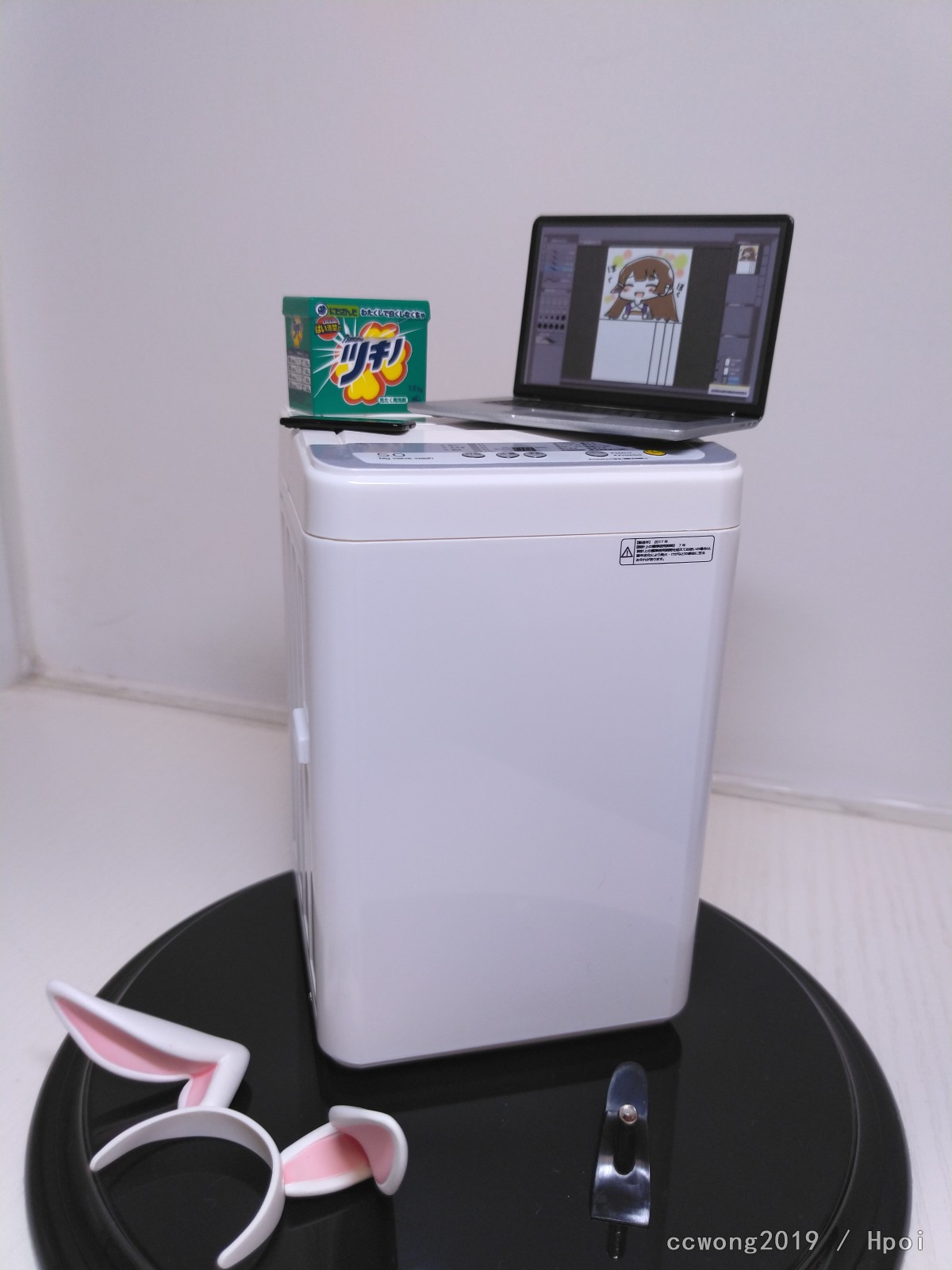 手办整体偏小,也算还原了委员长小个头的设定吧,但由于脑袋也偏小,整体看上去又很修长,有种1/8强行说成1/7的感觉,所以身材还原只能说差强人意。但管他呢,大长腿带着质感白丝袜,肉感绝对领域,我只想说一句:“我想色阿委。”服装质感也很到位,特别是白丝,让人感觉整洁干净(清楚)。洗衣机还原了通常洗衣机的白色抛光涂装,面板也做得一点都不含糊,文字转印非常清晰。但我这只的洗衣粉盒上印的名言警句却有部分印糊了,稍微有点失望吧。另外大腿上也有一个可恶的小黑点。除此以外就没有发现任何瑕疵了,品控方面还算满意吧。