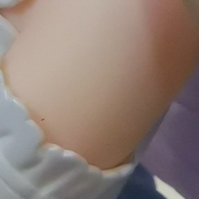 接下来全是瑕疵了—— 1,我观察到了两个黑点(一个是在左臂,另一个忘记在哪了) 2,蝴蝶结末端边缘微小蹭色 3,是我最不能忍的……左边的屁股脱胶了不小的一部分……由此可见大a现在品控有部分下滑真的是事实