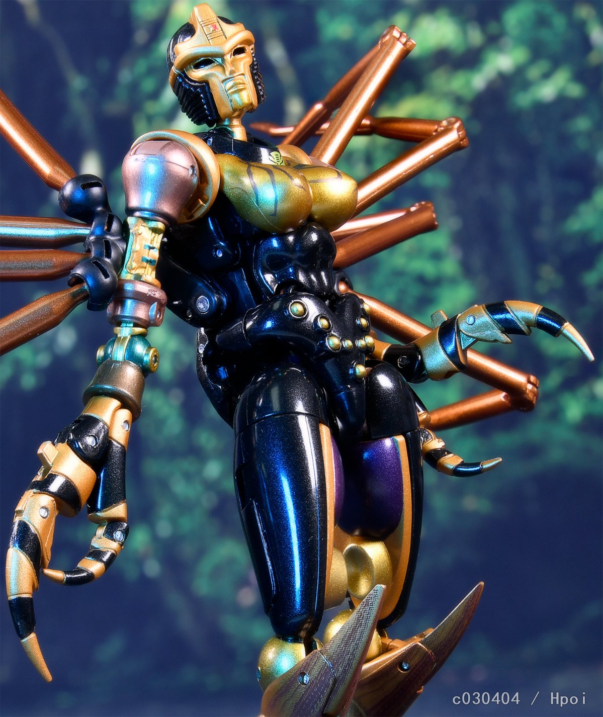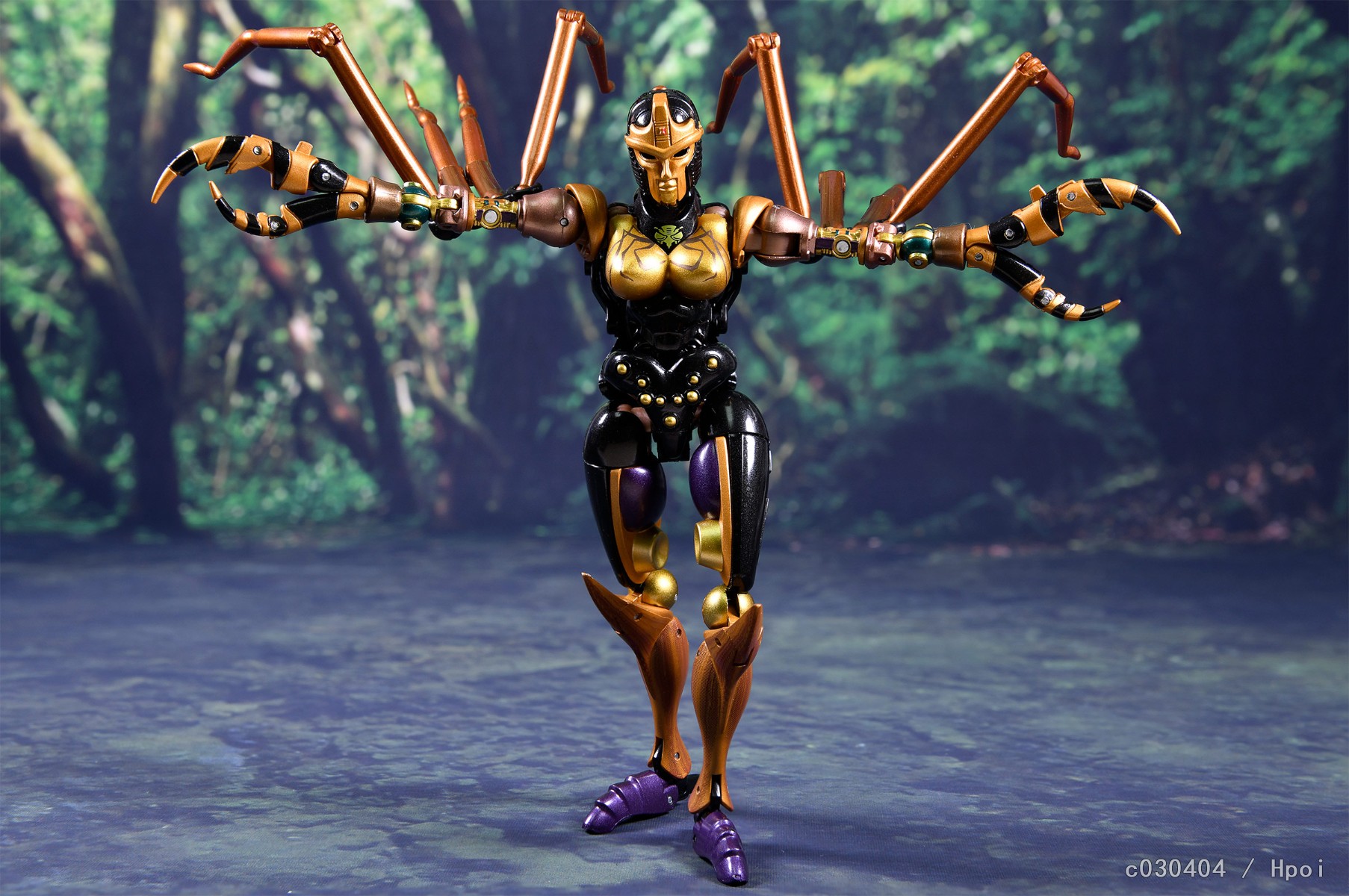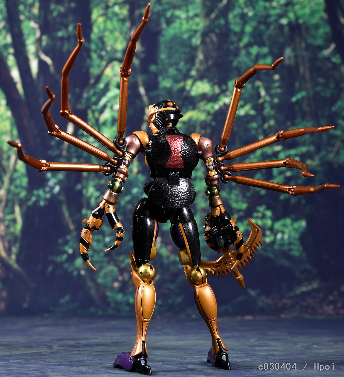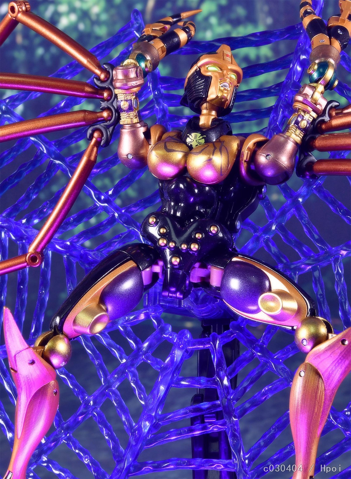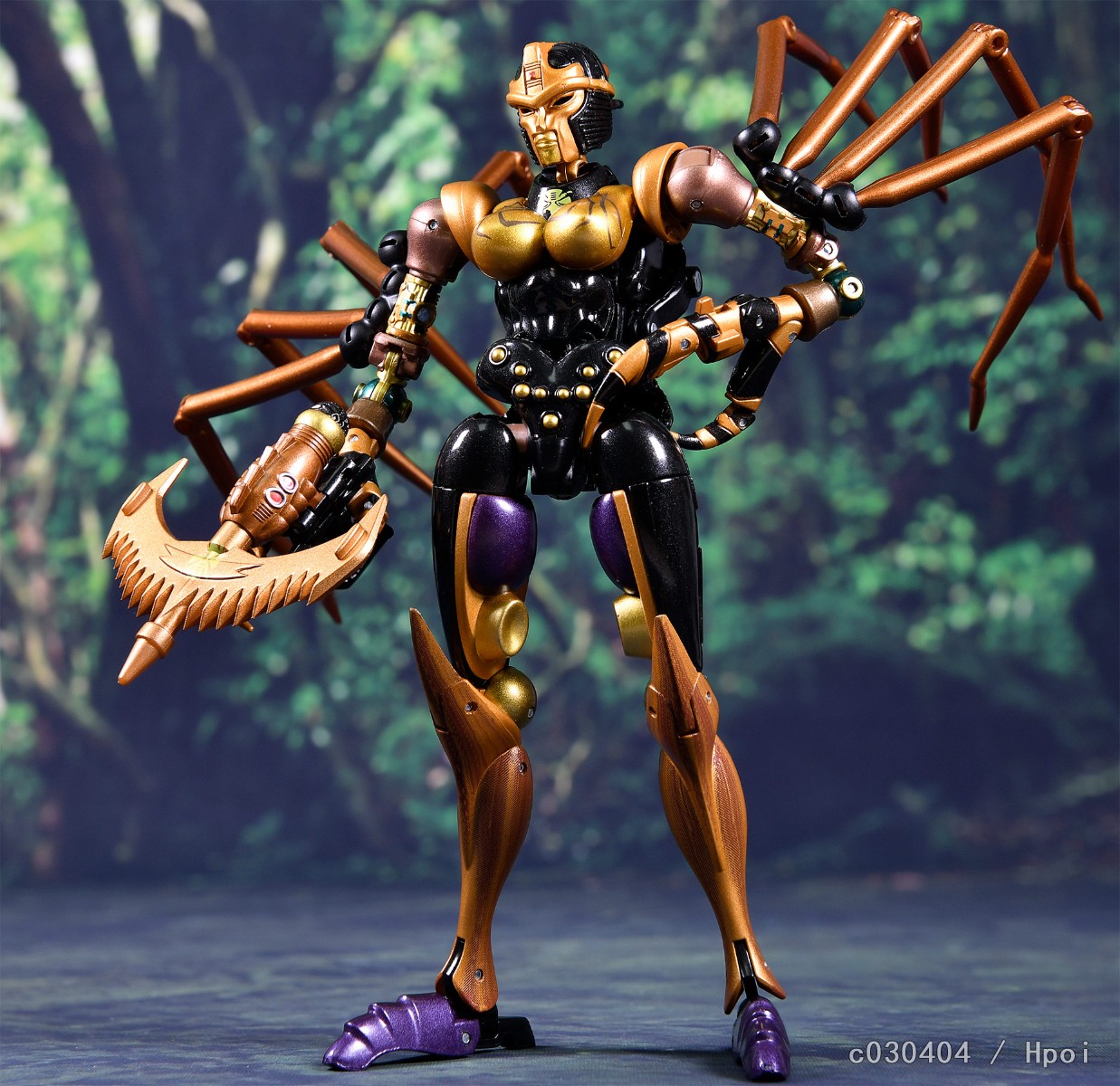 作为超能勇士MP系列的最新作,这款蜘蛛勇士保持了系列之前几款一贯的优秀传统,全身的生物质感刻画与原作如出一辙。人形像是从动画里走出来的,背后也没有破碎臃肿的背包(好评!)。可动性在变形金刚里绝对是出类拔萃的一档,还原动画POSE毫无压力。配件十分丰富,除了标准武器和面雕还给了机械眼罩、蜘蛛网以及地台等配件。这也导致蜘蛛勇士的价位偏高,另外比较遗憾的是和霸王龙一样没有把人形时那种高反光的金属质感表现出来。不过倒也没有什么硬伤。推荐超能勇士粉丝入手。