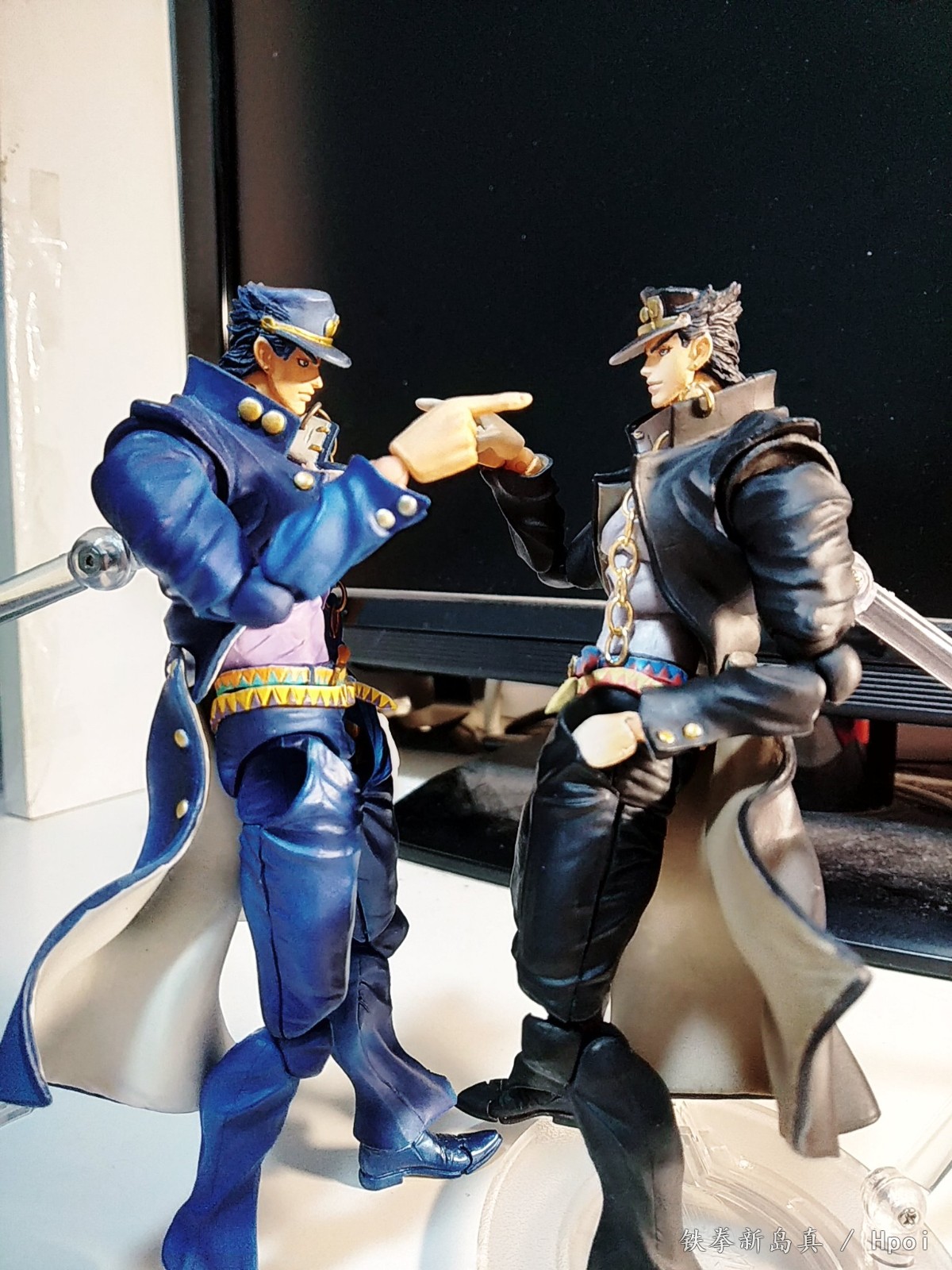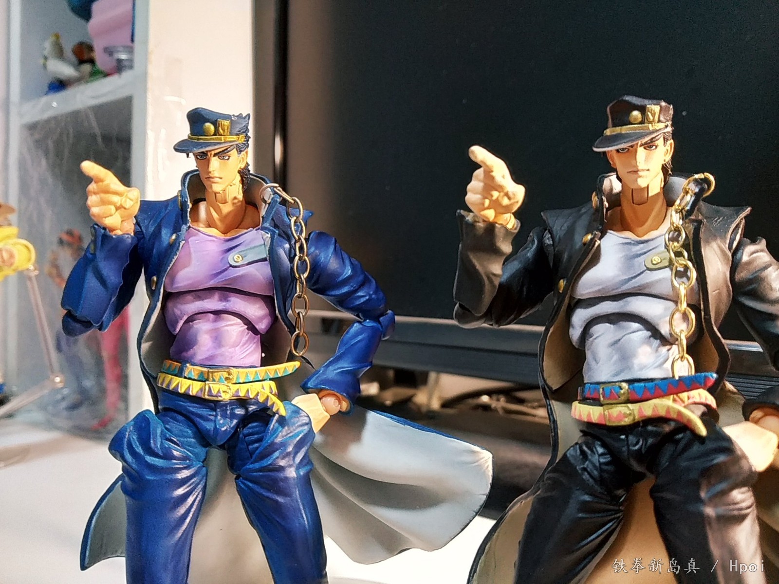 再版黑承,与多年前入的蓝色版做了对比。样貌差别是有的,但个人感觉各有千秋。蓝色的更显凌冽硬汉一些,黑色则更还原动画一些。而且超像涂装和小瑕疵一直也就那样,跟风黑再版真的没什么必要。