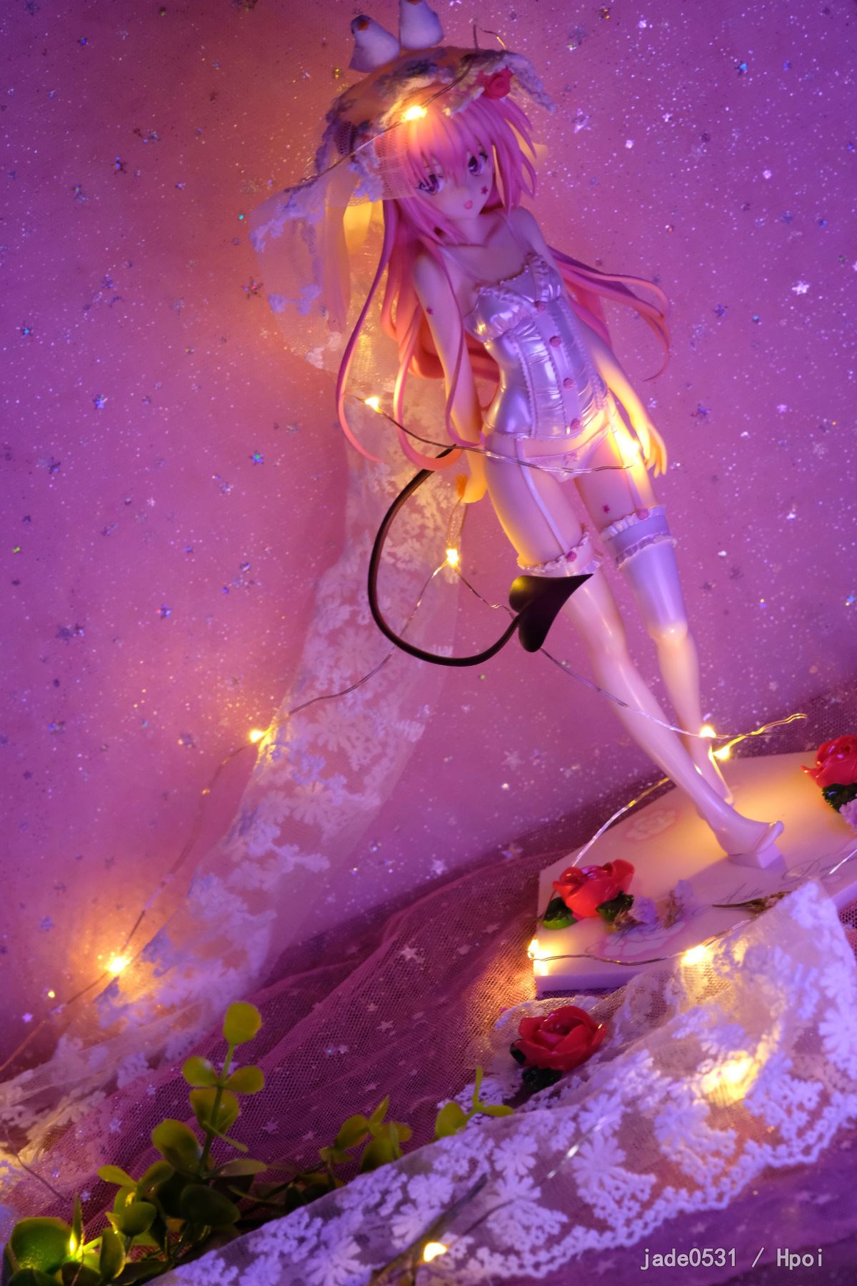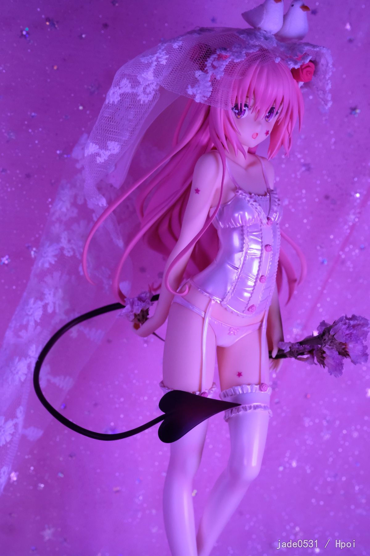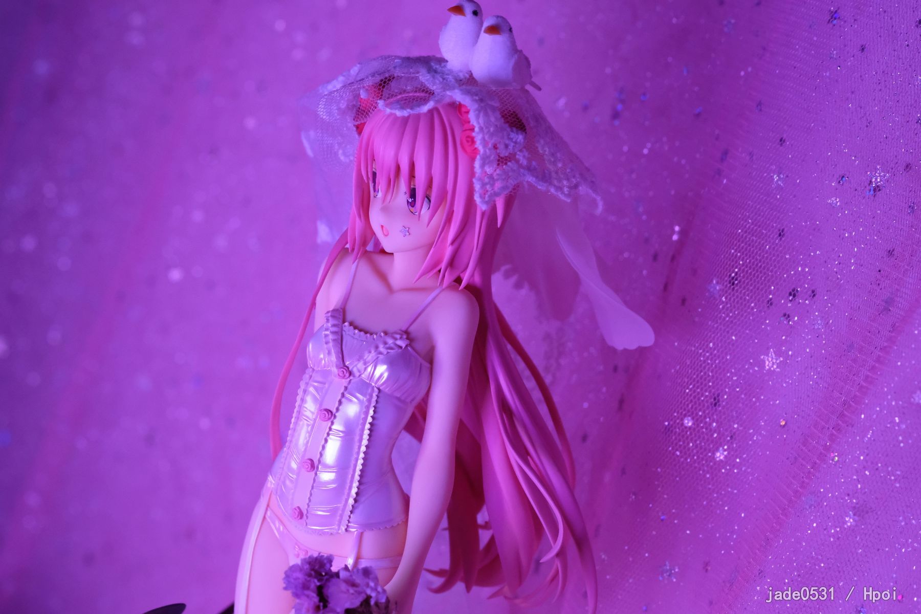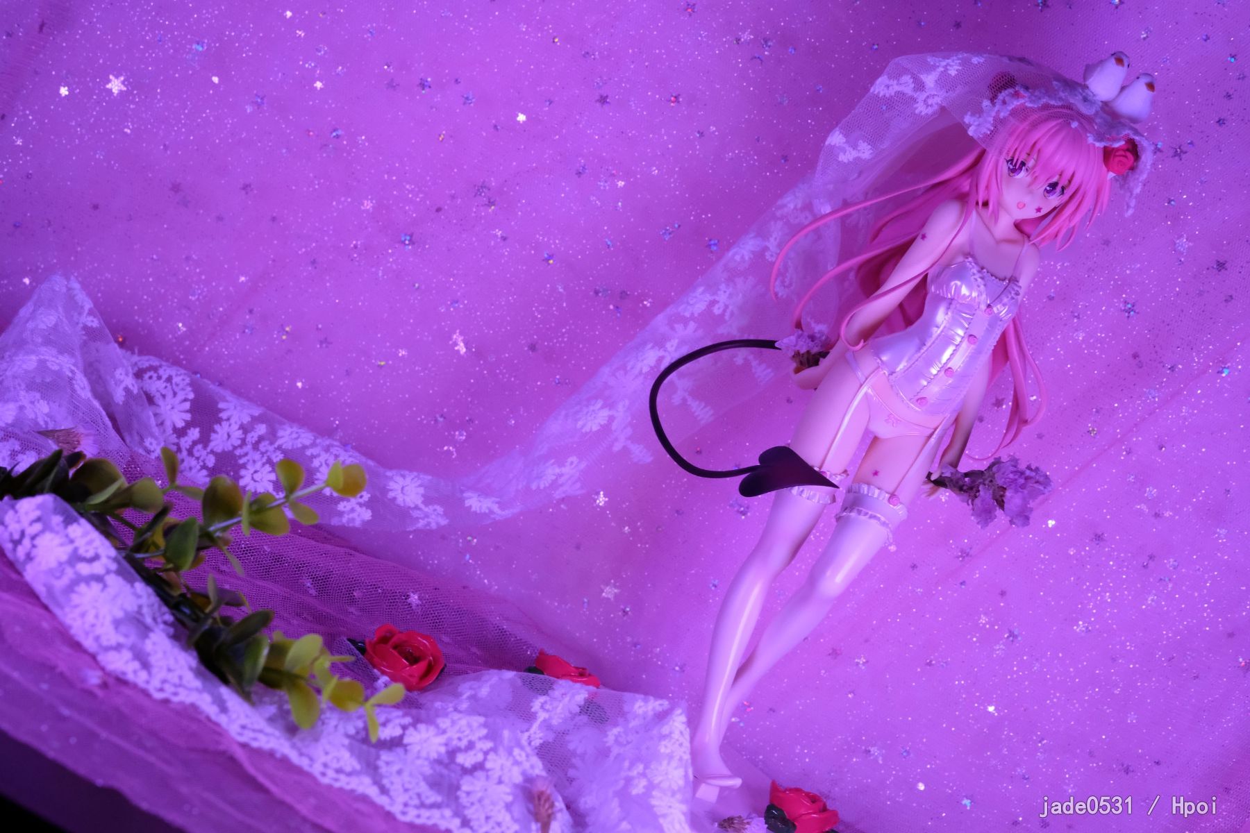 刚到家,继续家里蹲,还是不出去拍照了好麻烦...原来的头纱太挫了,就自己瞎jb折腾了一下
