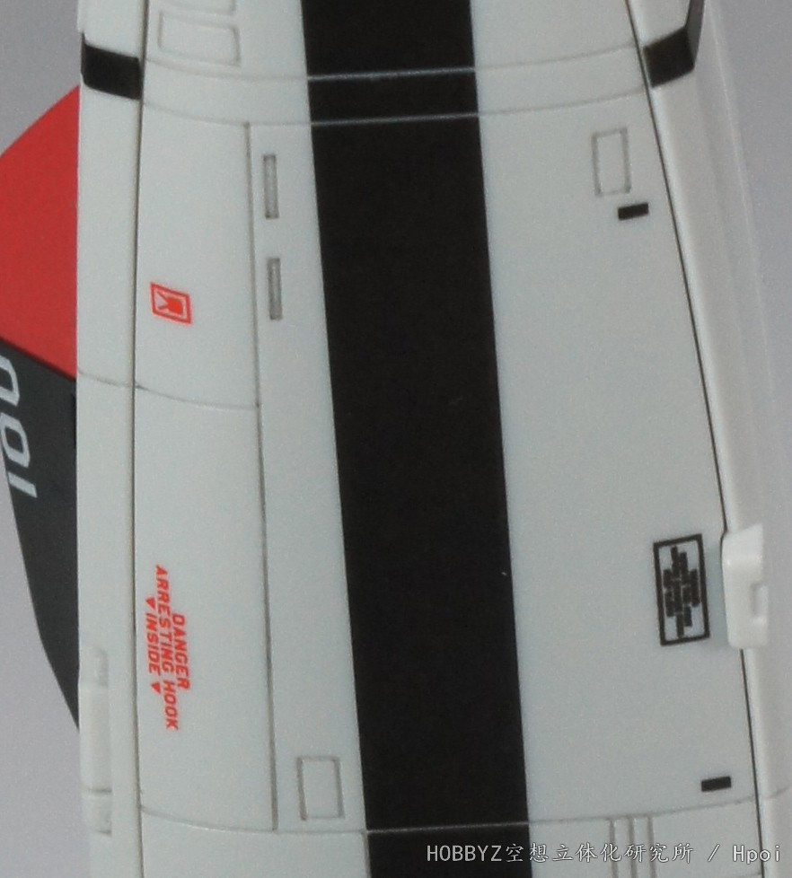 后部可以担当部分水平尾翼机能的可动整流板(当然玩具上是不可动)标注有禁止站立,后端是机尾编队灯的警告标识。