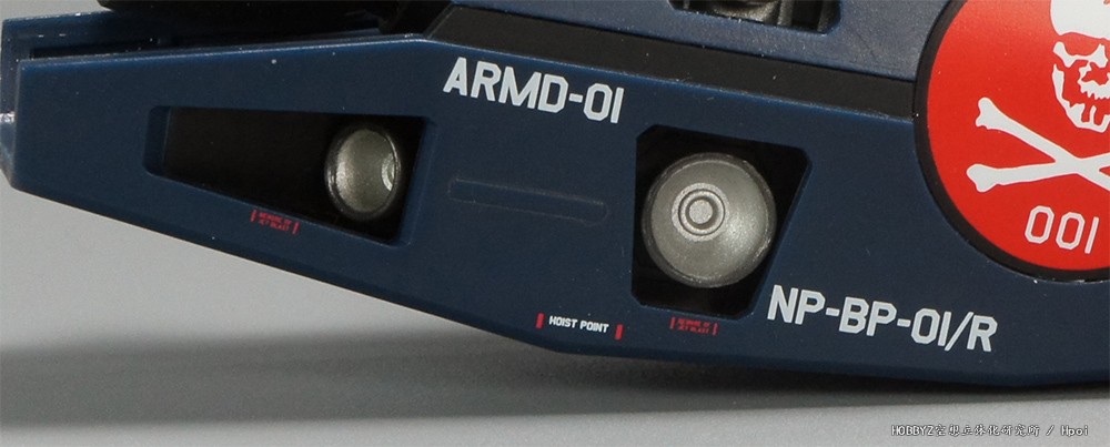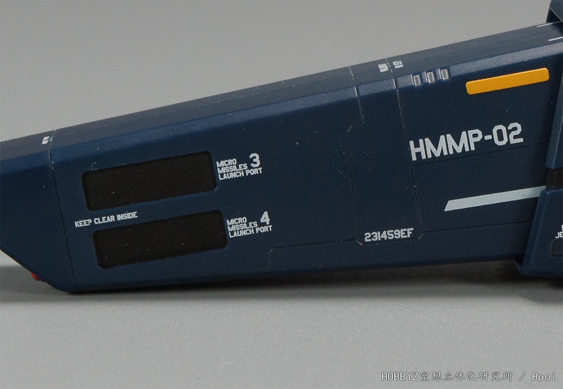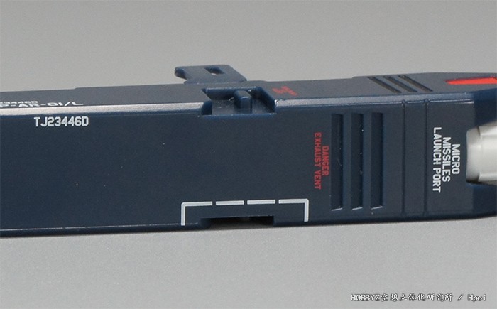 这里肯定是为了一套装备对应不同涂装的VF-1而进行的改动,原本我想进行一下重涂,不过后来在检查了其他部位的标志设计之后打消了这个念头,至于为什么会这样,后面再说(