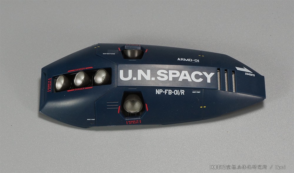 旁边则是挂钩固定点的标记,黄色的点是拼接对齐标记。再现了由CTB-04保型油箱和姿势调节火箭两套组件结合才是完整的NP-FB-01系统这个设定。