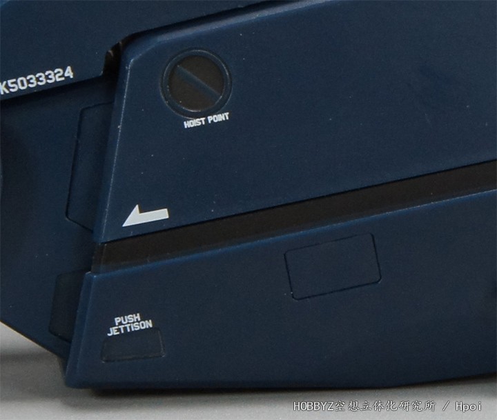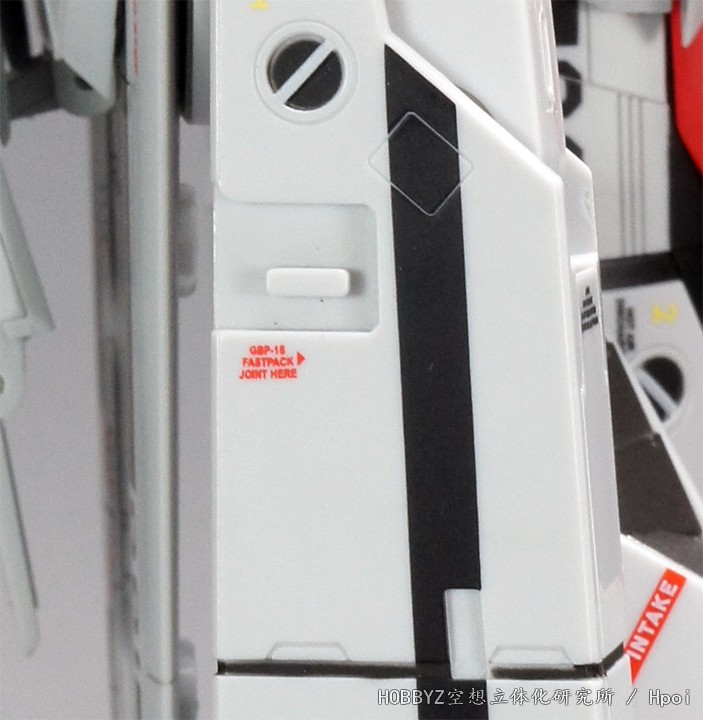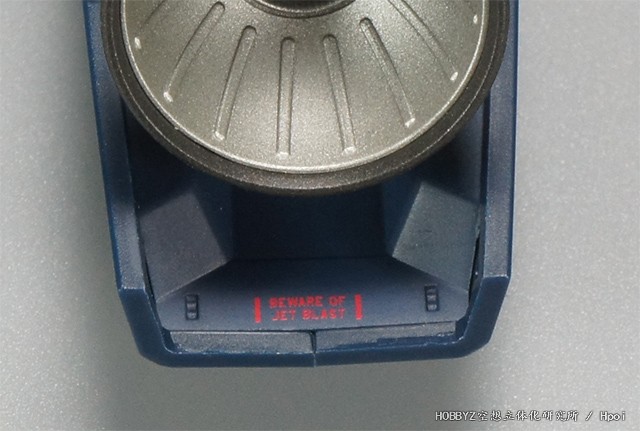 来到引擎舱上方/小腿后侧的保型油箱部分,后面的喷嘴标识有挂钩点,同时这个喷嘴在设定中只会在紧急卸除SUPER PACK时才会工作。