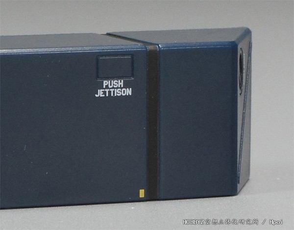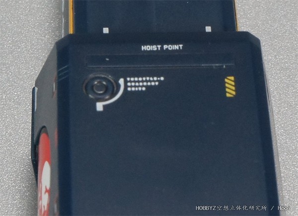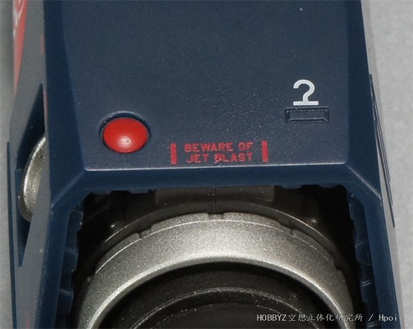 这次DX超合金直接在顶部加入了小小的核能警告,似乎就是承认了后期型以及核动力火箭的说法了。此外在两边的两个标记,是标注宇宙中出击时机械吊臂夹住的部位。