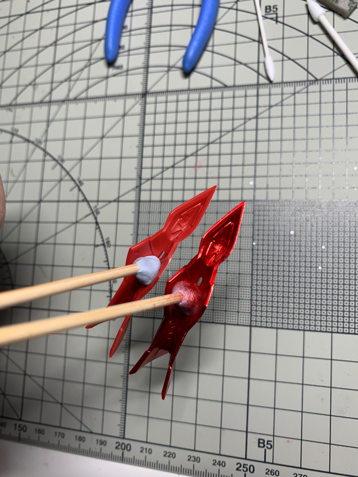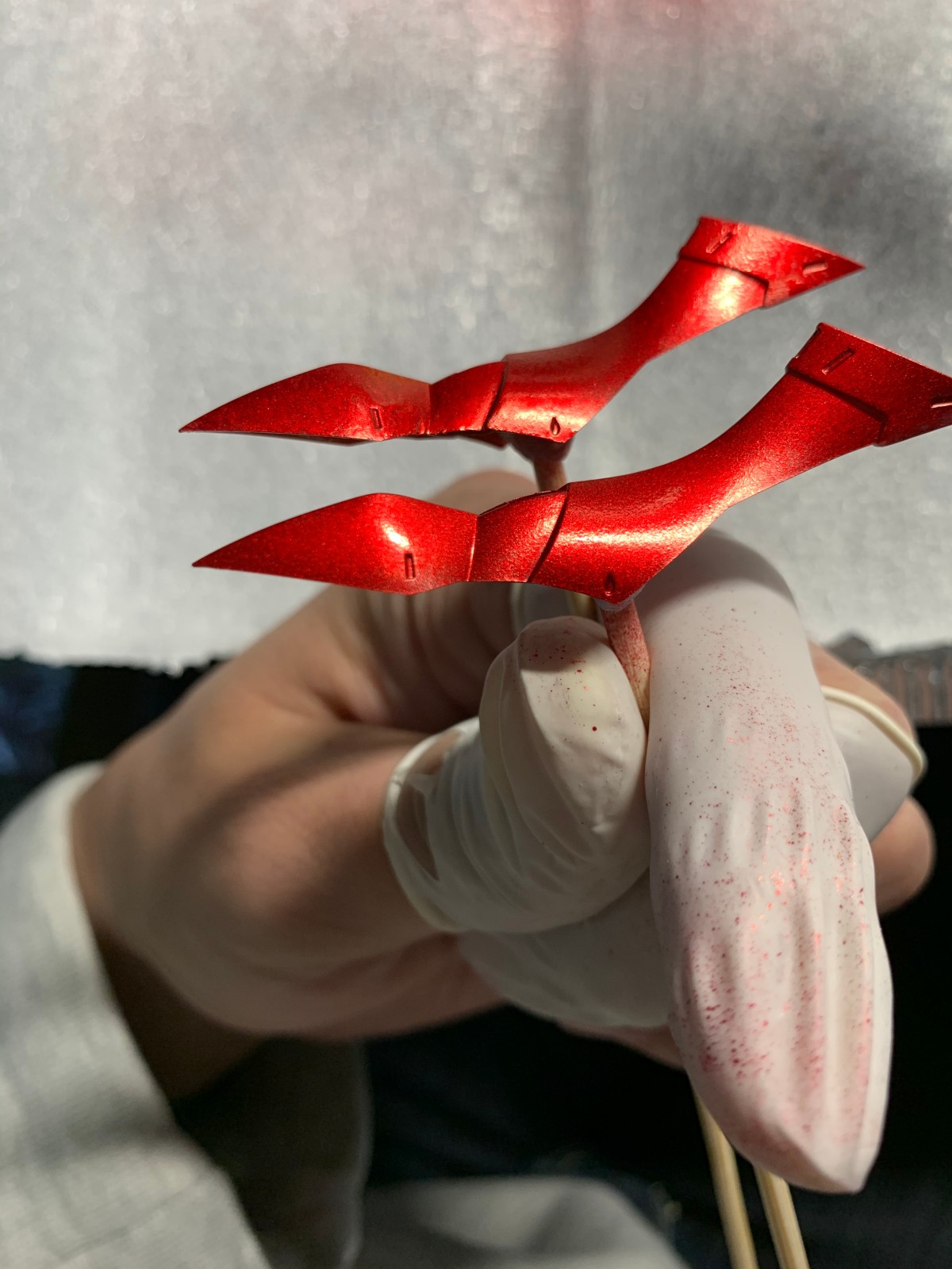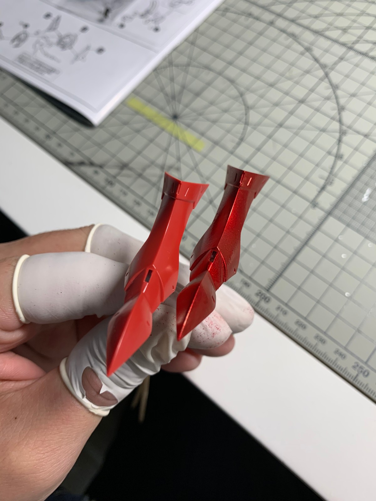 这是用原装笔头喷涂的,另一个件是未喷涂的,感觉雾化效果不太好,就喷了一个件摇了三四次笔,应该是国产喷笔的锅 (ಥ_ಥ)