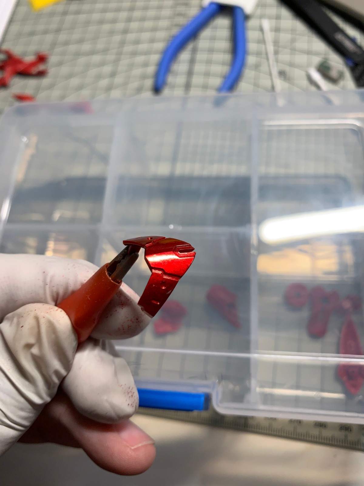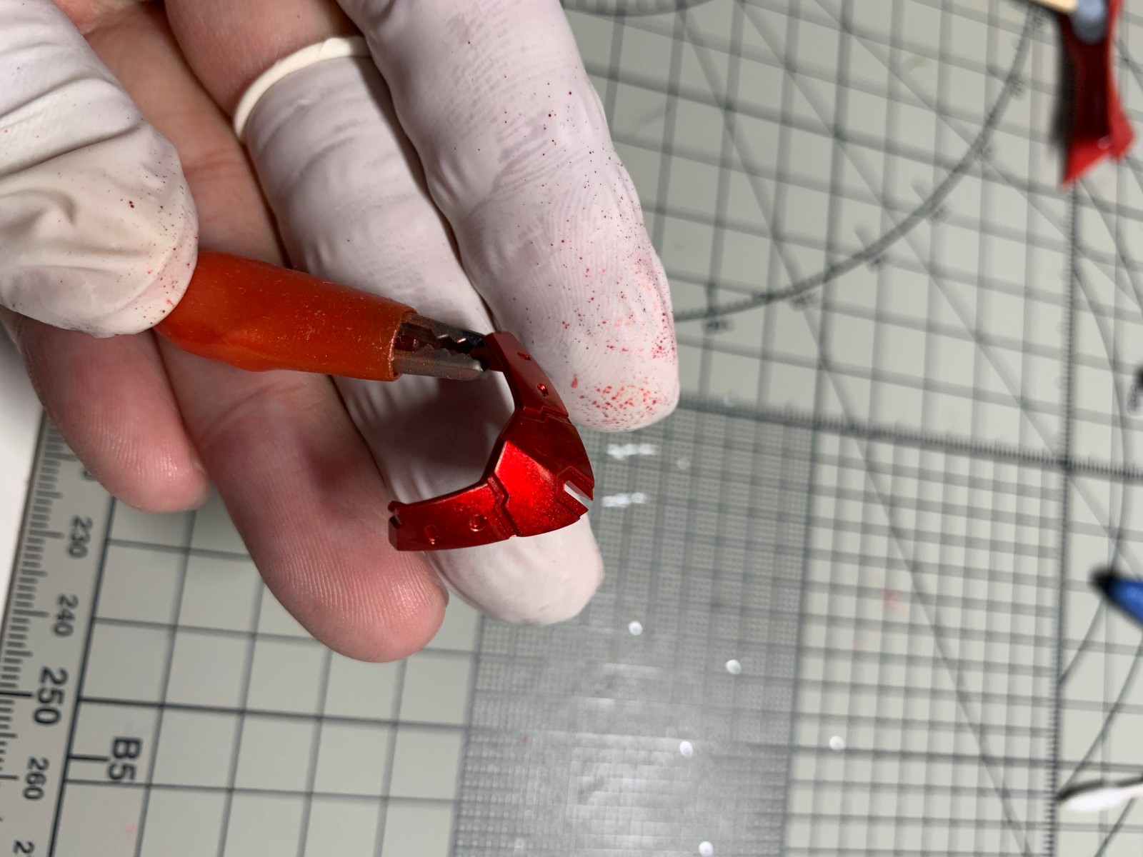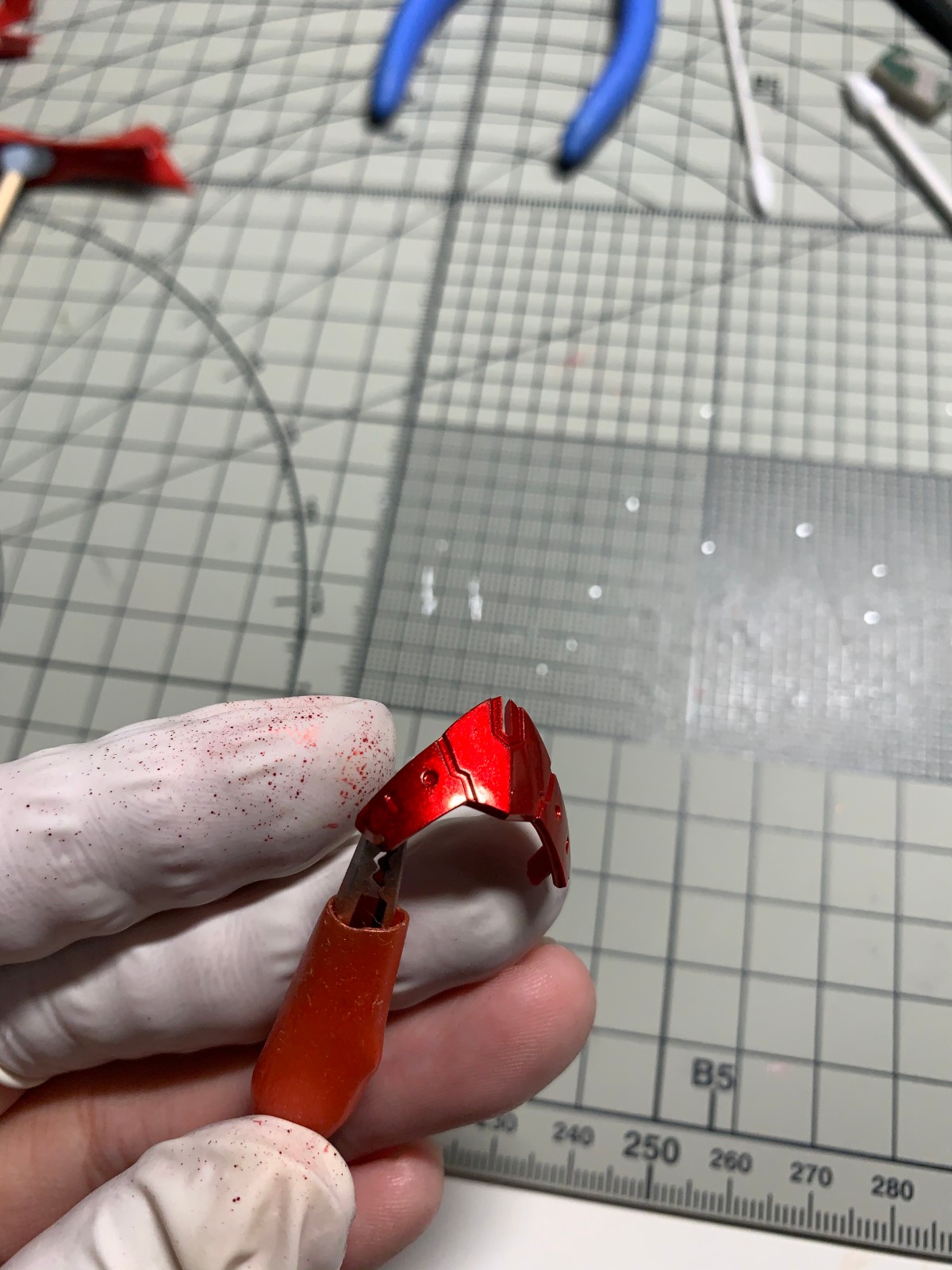 这是用原装笔头喷涂的,另一个件是未喷涂的,感觉雾化效果不太好,就喷了一个件摇了三四次笔,应该是国产喷笔的锅 (ಥ_ಥ)