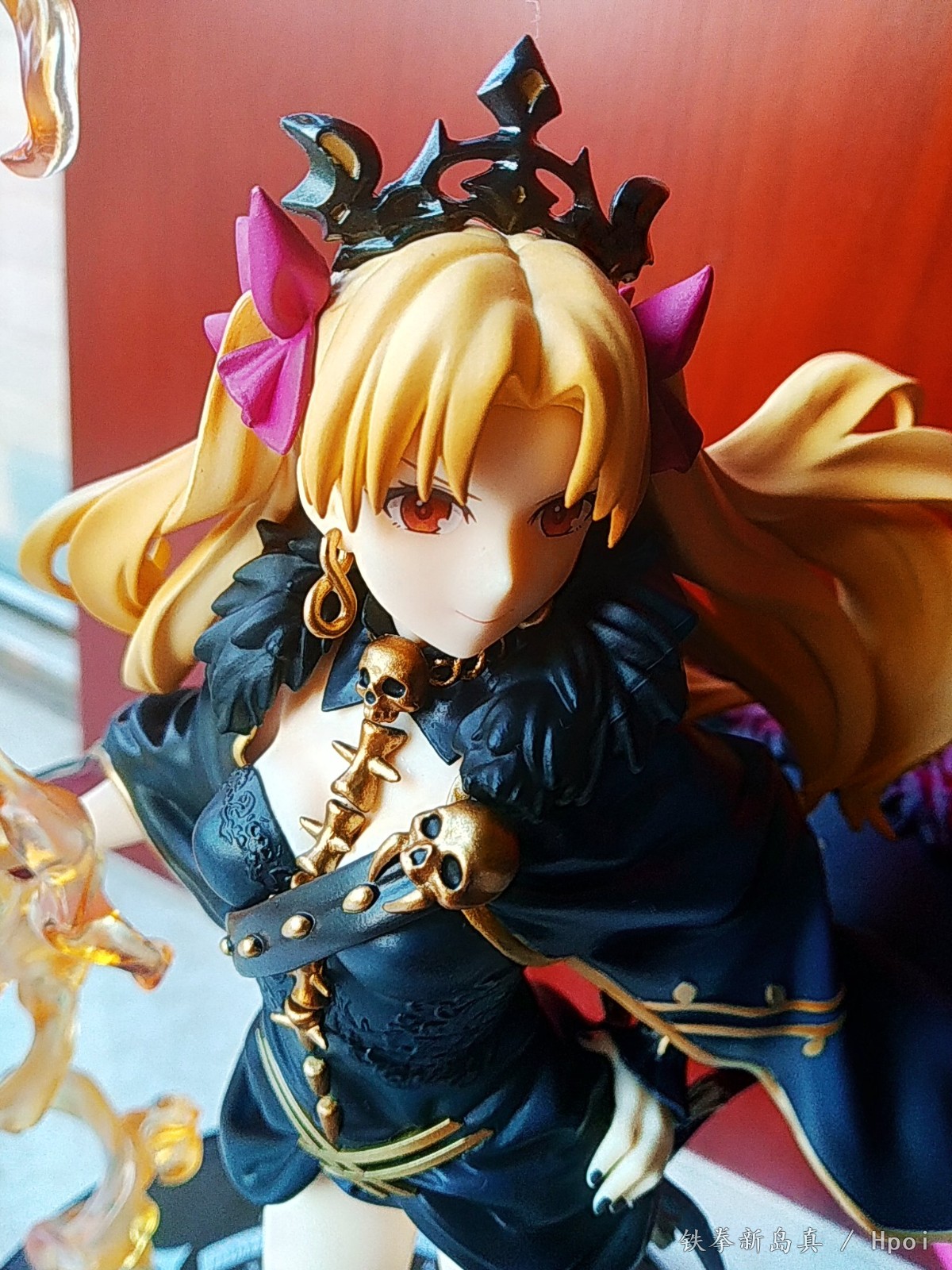 其次涂装方面,个人感觉腿甲的涂装和袍子的涂装是亮点。要比衣服上的骷髅涂装精细。发热神殿也很漂亮,王冠也黑亮黑亮的。就是刘海的做工略显粗糙,实在有点符不上定价。