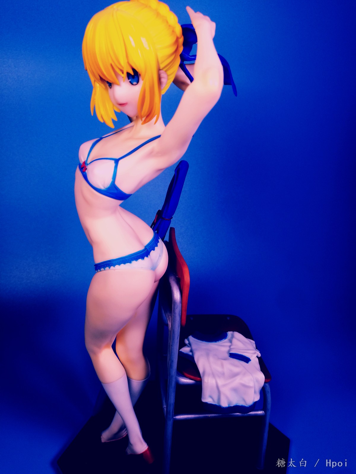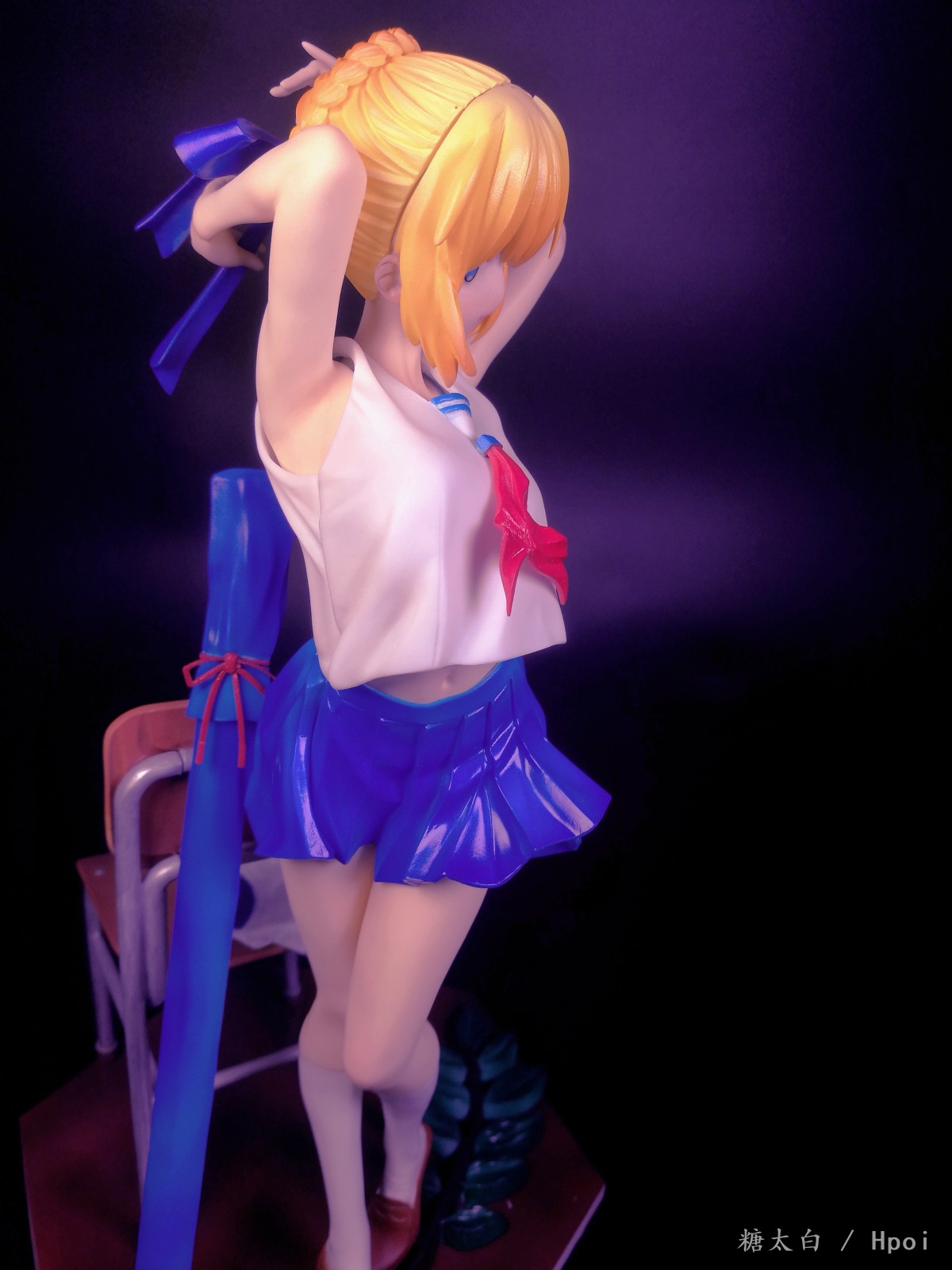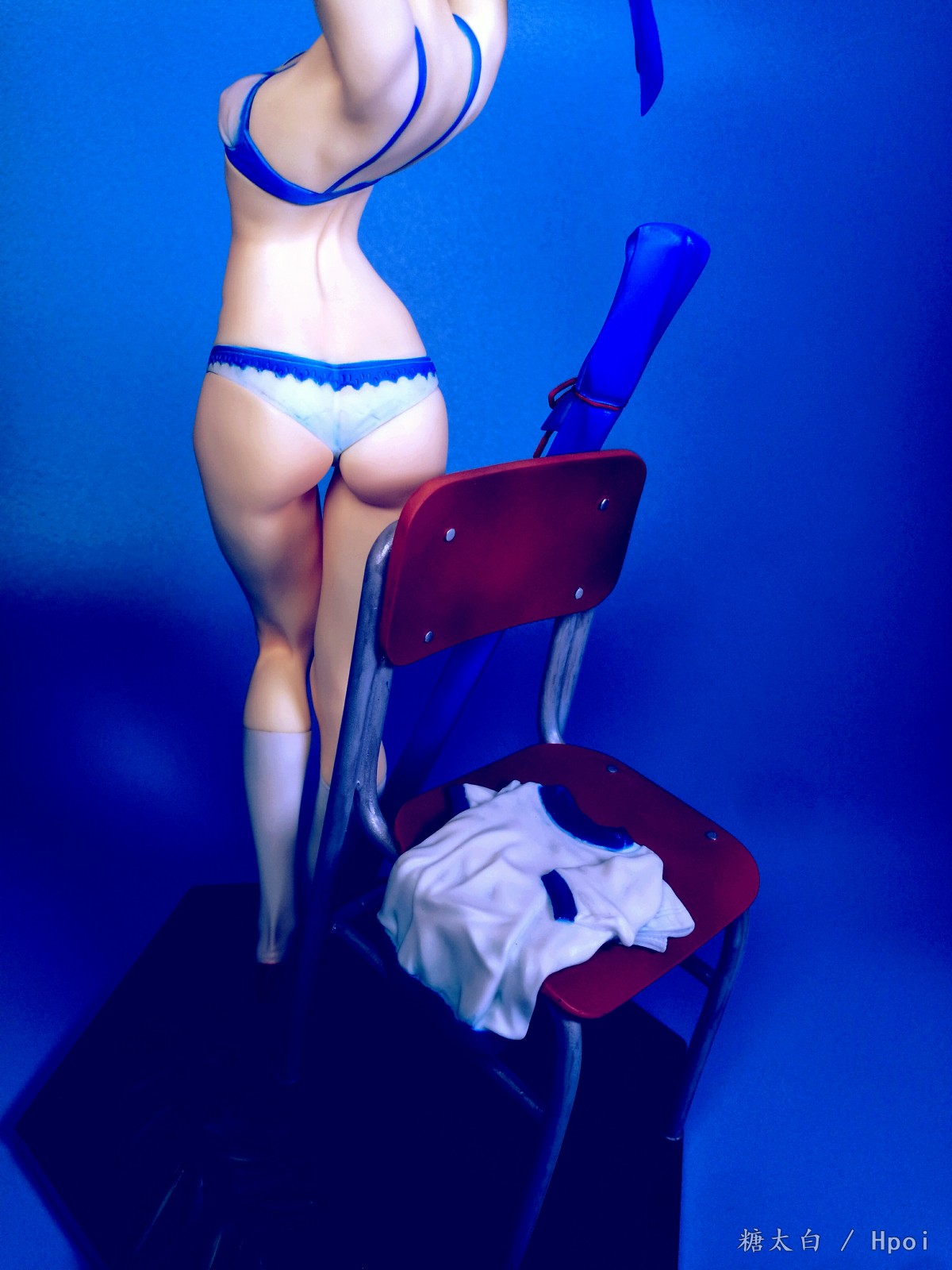 这套件的品质很不好,身体上有小黑点得挖了重新补,而且有的地方特别不好打磨,总共就两个蝴蝶结还两个都断了,头上的蝴蝶结一共就两条缎带还断了三处,502都粘不起来,最后是用ab补土辅助才勉强拼起来的,瑕疵很大,不能细看