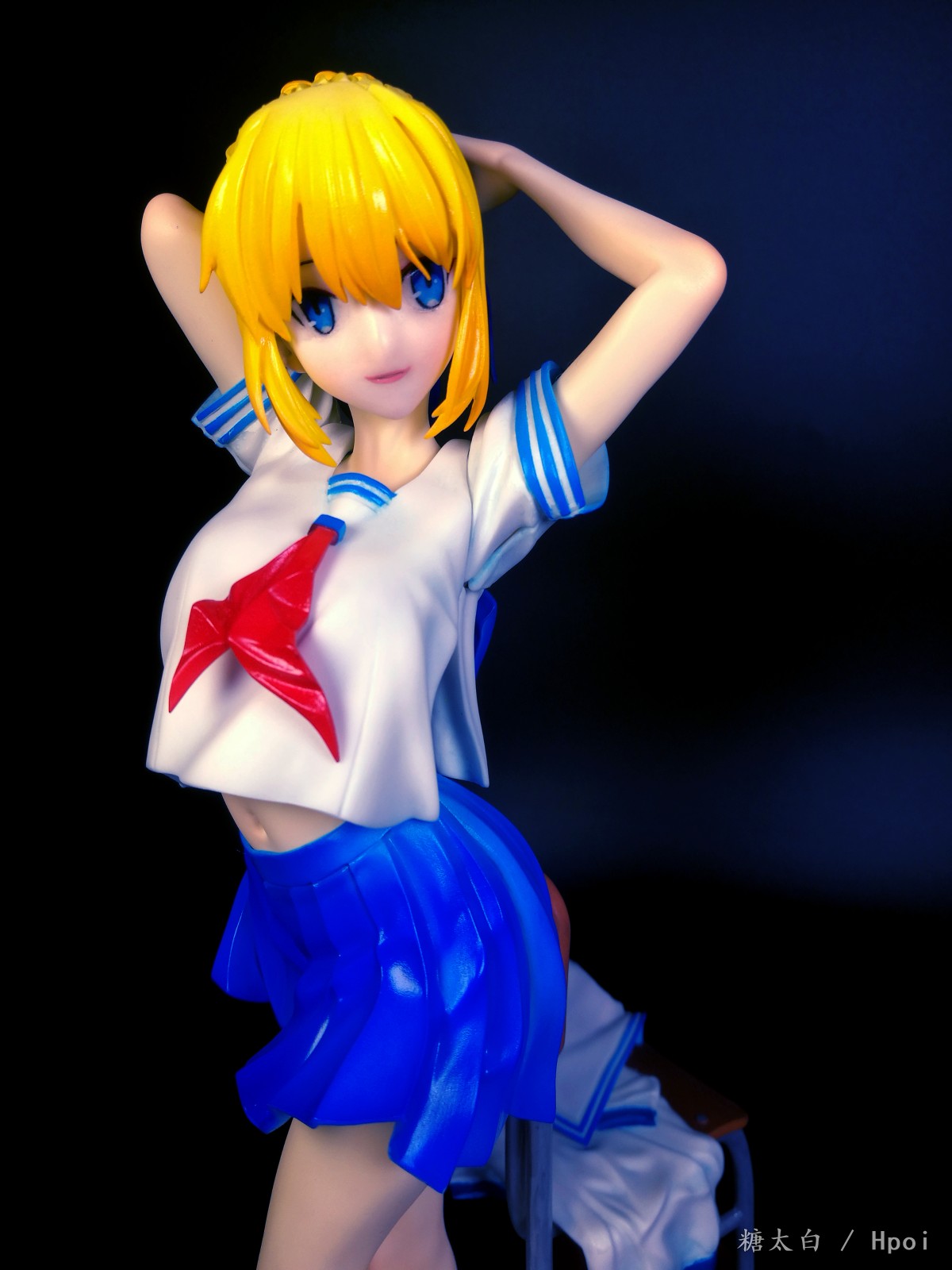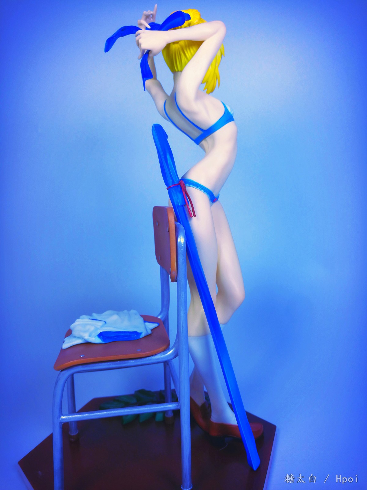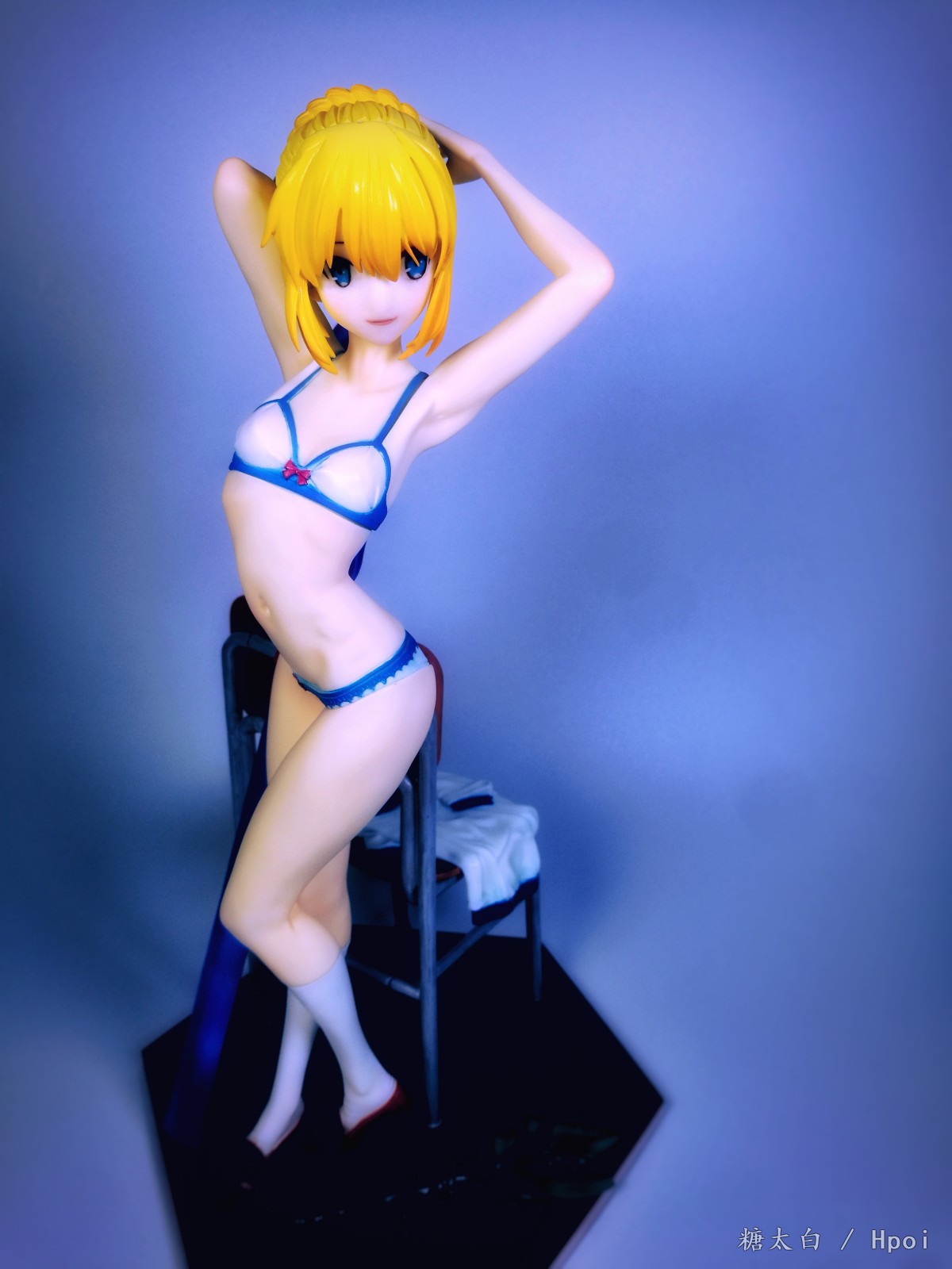 这套件的品质很不好,身体上有小黑点得挖了重新补,而且有的地方特别不好打磨,总共就两个蝴蝶结还两个都断了,头上的蝴蝶结一共就两条缎带还断了三处,502都粘不起来,最后是用ab补土辅助才勉强拼起来的,瑕疵很大,不能细看