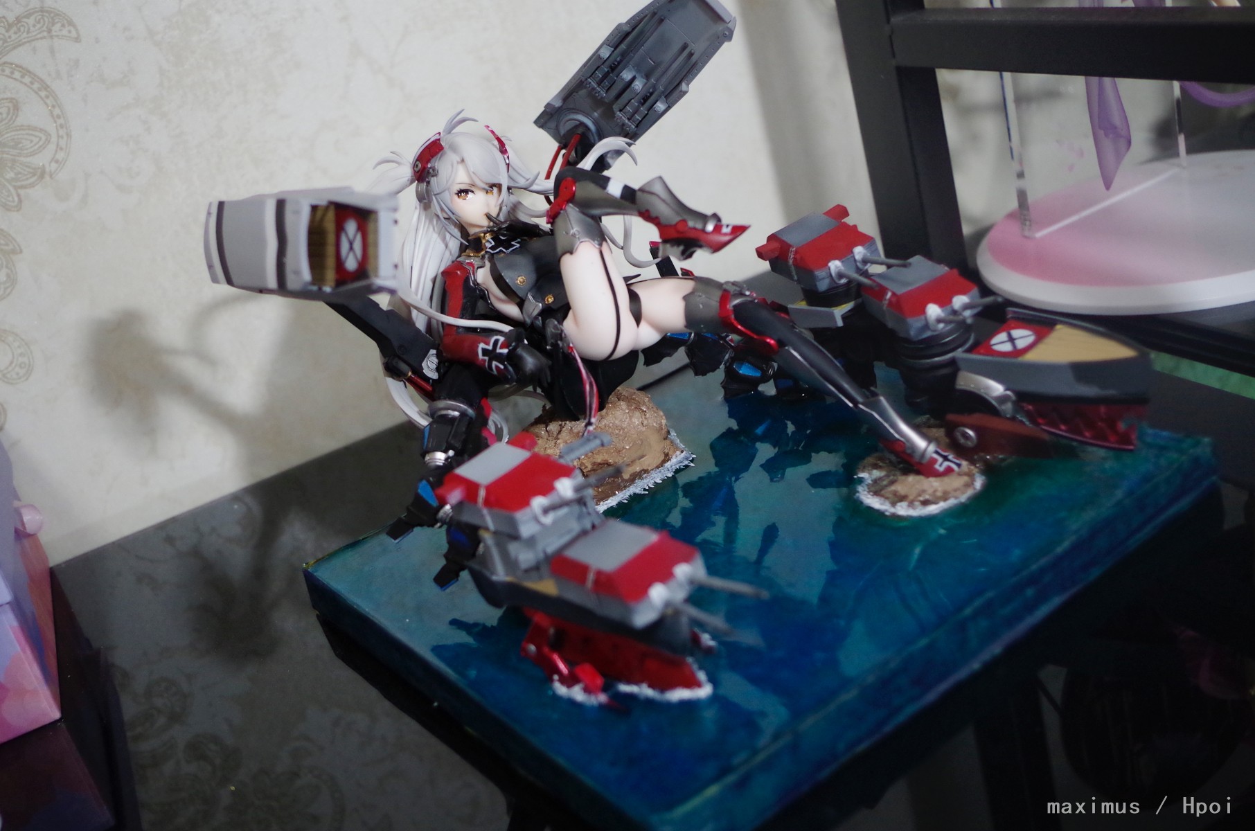 碧蓝第一条金皮船,前段时间大A出了pvc,本想支持一波,无奈家境贫寒233。参考价好几个欧根GK的案例,纯属抄袭,毫无原创emmmmm,现学地台制作,眼高手低,各种翻车,总算最后是做出来,组装完了后发现欧根的灵魂红毛竟然忘了做,然而已经粘死,本想补救一番,怕一失手毁所有,就这样吧,等我以后手艺成熟了,重新在做一个(那是不可能的)