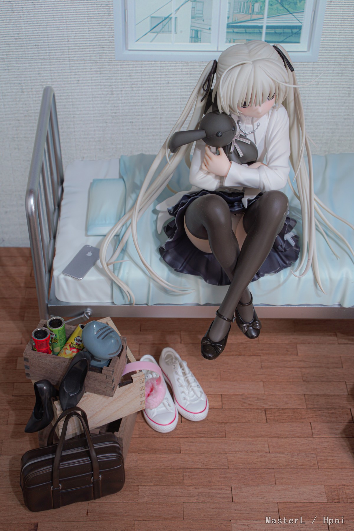这款手办也是逛HPOI时,一眼相中的一款。青涩的表情,修女校园服装,飘逸的头发,若隐若现的胖次,蝴蝶结的低跟鞋,收在大腿的黑丝,一切的一切,都戳中了我钱包的G点。打开淘宝,8字头的价格,完全可以接受,想都没想就付款了。