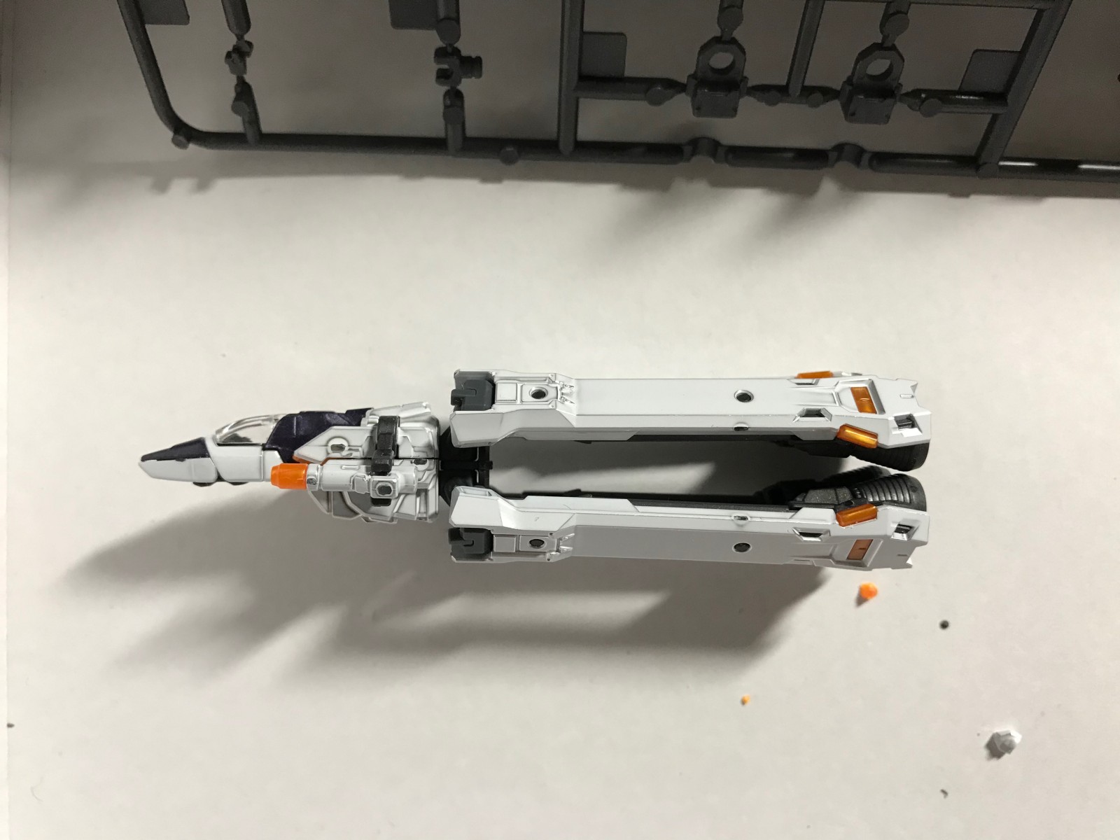 做好了,正面基本没啥大问题,主要水口集中在背后,手臂侧面的几个水口是致命伤,还有小飞机身上全是水口,考虑用新银色马克笔补色