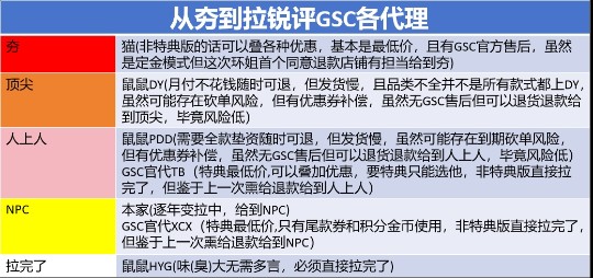 随意锐评一下gsc各代理