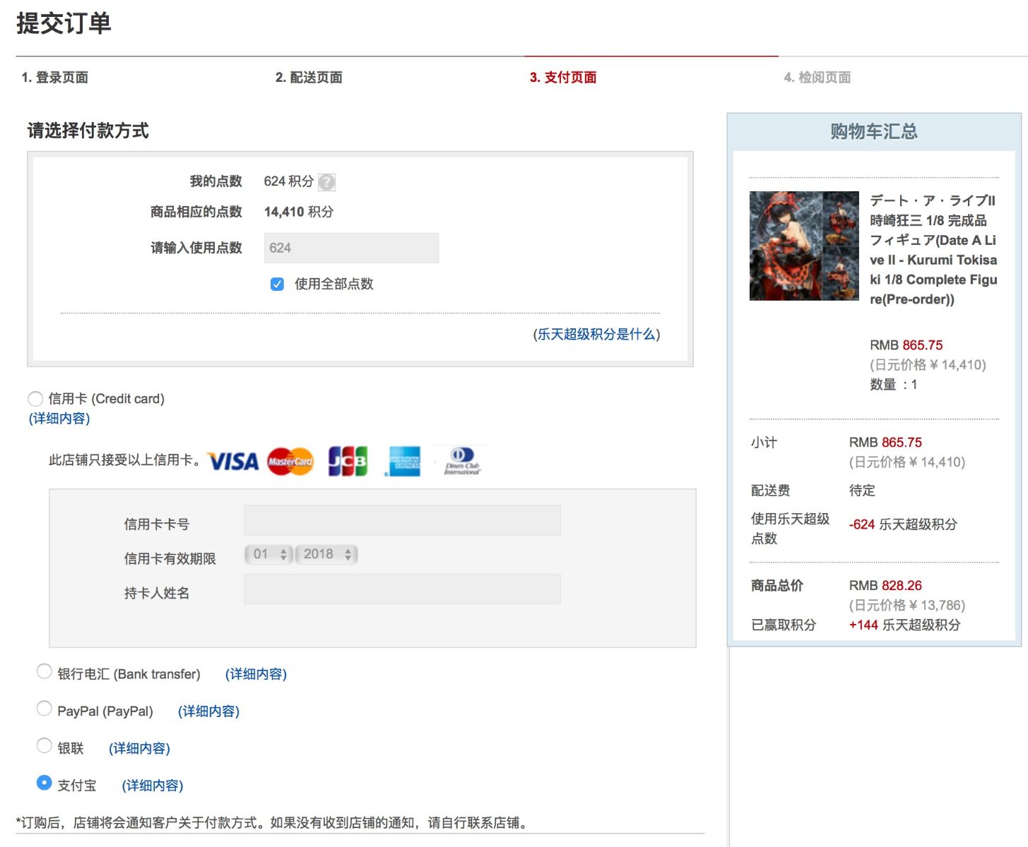 选择信用卡、银联、支付宝操作都差不多,区别在于后面收到邮件时到操作。可以看看支付方式后面的“详细内容”,有具体的说明。