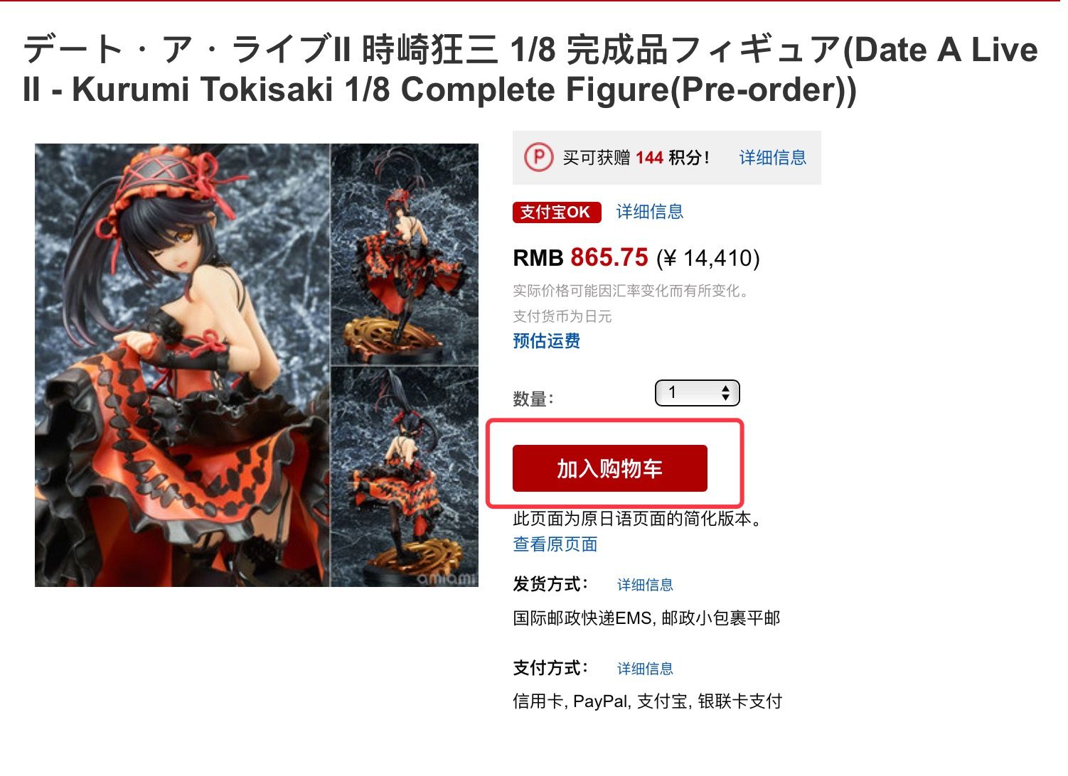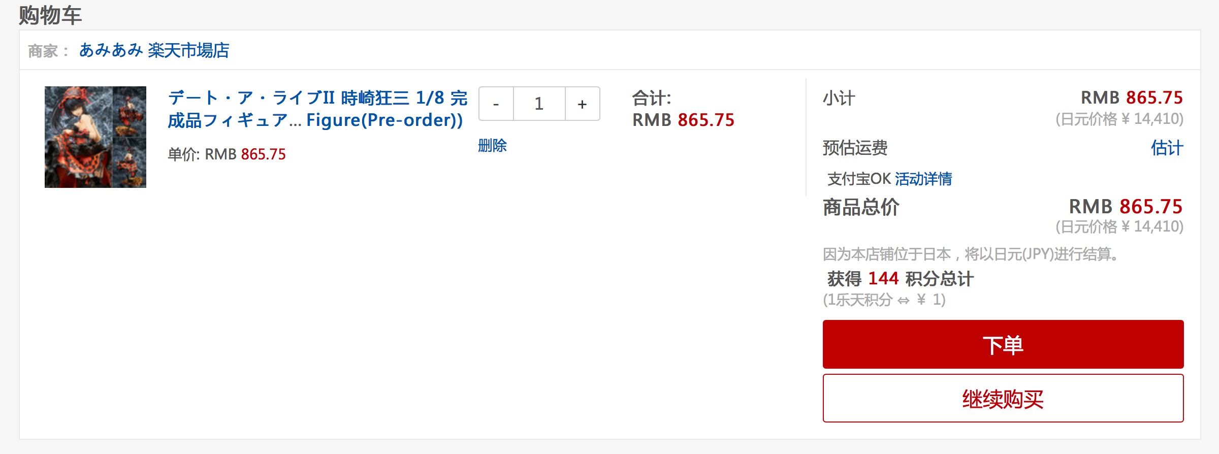 使用乐天国际买过几个手办,其中3个预订,一个现货,都安全到手了,无中奖。