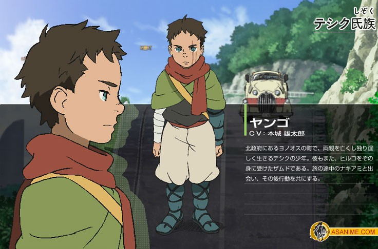 在北方政府管辖内的一个村落中苟活的少年,双亲在一次火车爆炸事件中死去,他也在那时被种上了蛭子,而成为了扎姆德。是为数不多没有变成石头的扎姆德之一。因为卷入与村民的斗争而被娜琪亚美所救,随后跟随娜琪亚美一起寻找特希克的村落。