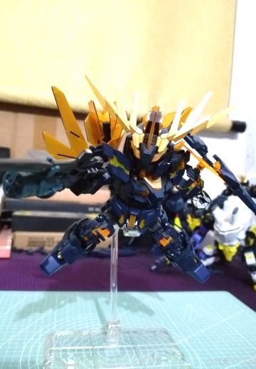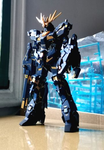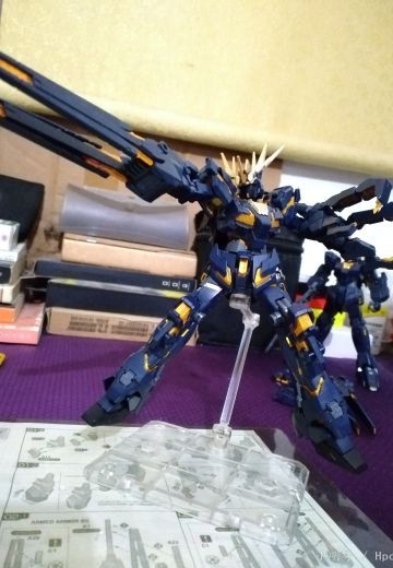 2号机两腕追加了应用精神感应框架的新式复合兵装“武装机甲”,装备于右腕的是射击武装“Armed Armor BS”,在“毁灭模式”下,光束偏光器可以向前方180度展开。装备于机体左腕的则是格斗武装“Armed Armor VN”,该武装外层施加了反光束涂层,可以作为盾牌使用,“独角兽模式”下呈拳套形态覆盖于前腕部,作为打击兵器使用,而在“毁灭模式”时则可变为利爪形态。
