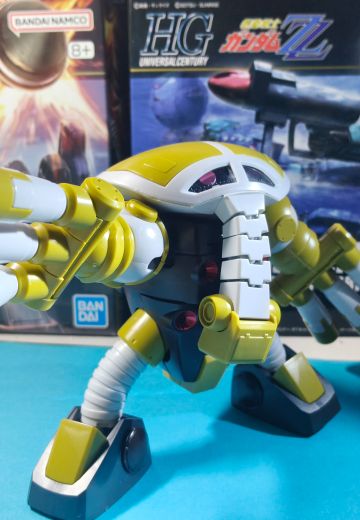 水中战斗能力与其他水陆两用MS比起来则较差。具有厚实装甲外壳的手臂三连炮,也可根据目的换装内藏的武器。