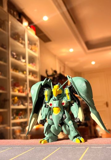 本机是作为格雷米军的最终兵器而开发的NT专用MS,头顶高几乎是ZZ敢达的两倍,这部机体除璞露茨以外的人是无法驾驶的。奎曼沙胸部装备的两门高能MEGA粒子炮具有极高的威力;机体后部搭载了与卡碧尼同型的浮游炮,数量则是后者的3倍。虽然奎曼沙的威力超出了想象,但最后仍然与格雷米一起在阿克西斯被击毁。新吉恩在卡碧尼之后开发的究极NT专用MS,机体各处装备9门米加粒子炮,能向各个角度狙击,两肩的活动翼有强力的米加粒子偏向器装置。超能米加粒子炮级别火力直击也几乎无法对本体产生伤害。驾驶舱安装在头部,也可以作为单独的机动装备移动。