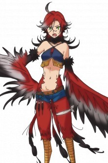 ハーピーの少女。奴隷商に捕まっていたところを、グレンたちによって助けられる。両親はおらず、孤児としてスラム街で育った。ケンカ好きで奔放なところもあるが、本当は空を飛ぶことが大好きな、明るく無邪気な年頃の女の子。鋭い鉤爪(かぎづめ)を持っており、崖や木の上など、不安定な場所でもがっちり掴まることができる。頭頂部から生えているのは髪の毛ではなく冠羽(かんう)というハーピー独特の羽根。