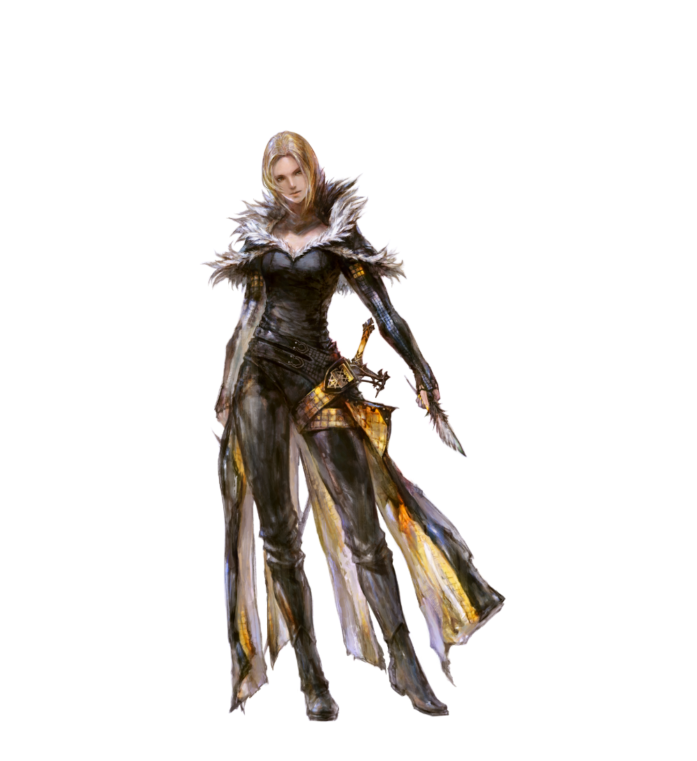 凭借卓越的剑技和执行任务的能力担任着沃尔德王国秘密侦察队长,同时也是风之召唤兽「迦楼罗」的宿主。幼年时期的残酷经历造就了她冷酷残忍的性格,与追寻黑之伊弗利特的克莱维一起邂逅了迷之火的宿主,从而不得不直面自己的过去