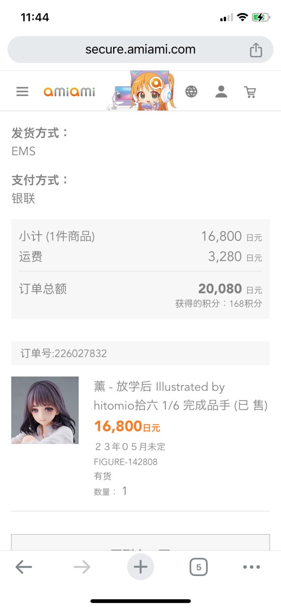 积分减了168日元,折合人民币1052.6元(不含关税)。