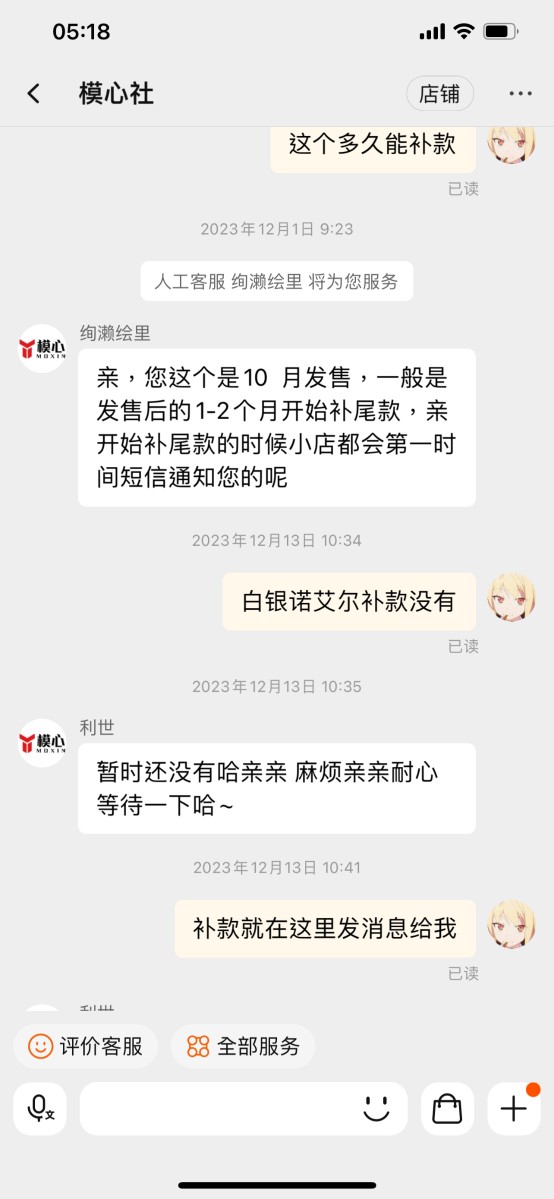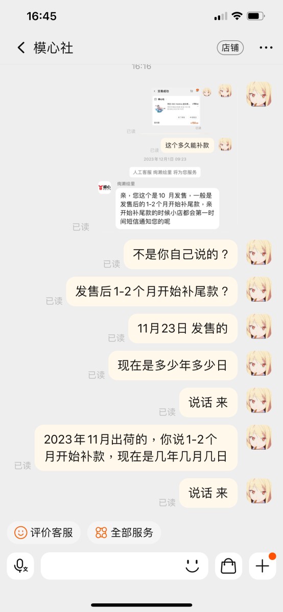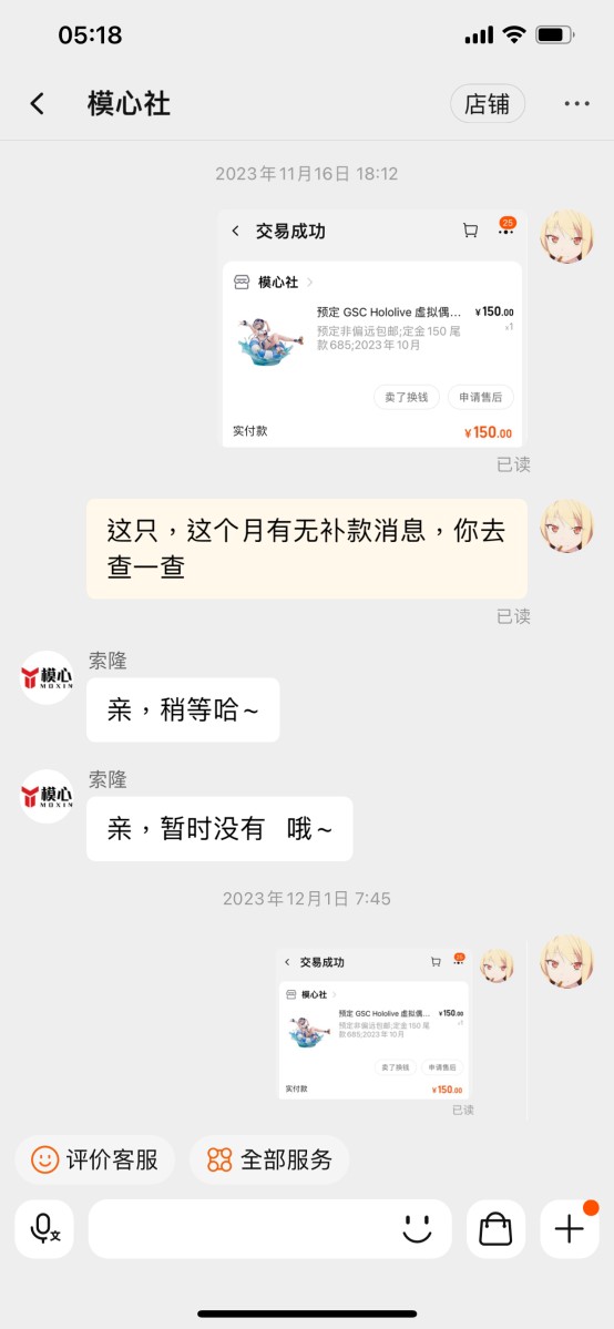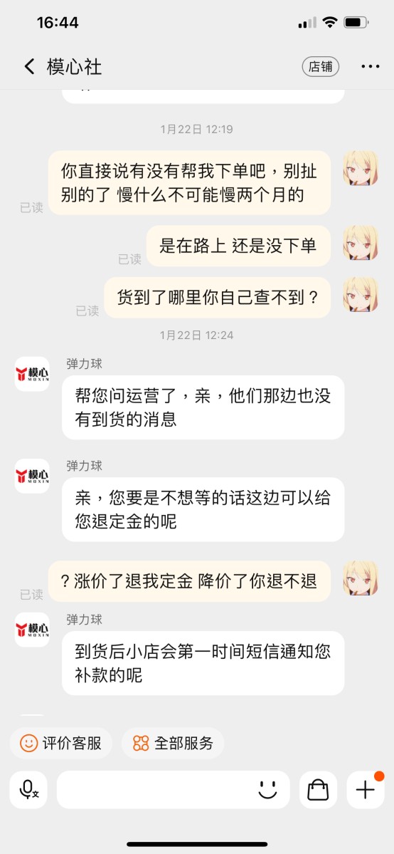 Tb上绝大部分都是骗订金的黑店,除了大A的官网,其他根本不可信,我明知道这个手办会涨价才预定的,还准备向群友炫耀一波,下单之前在贴吧论坛之类的都搜过了,看到没什么负面信息才下单,结果还是遇到了黑店。 我交学费了,大家以后避雷吧 现在不仅18x手办买不了,连买普通手办也难了,我们下单是一点权益保障都没