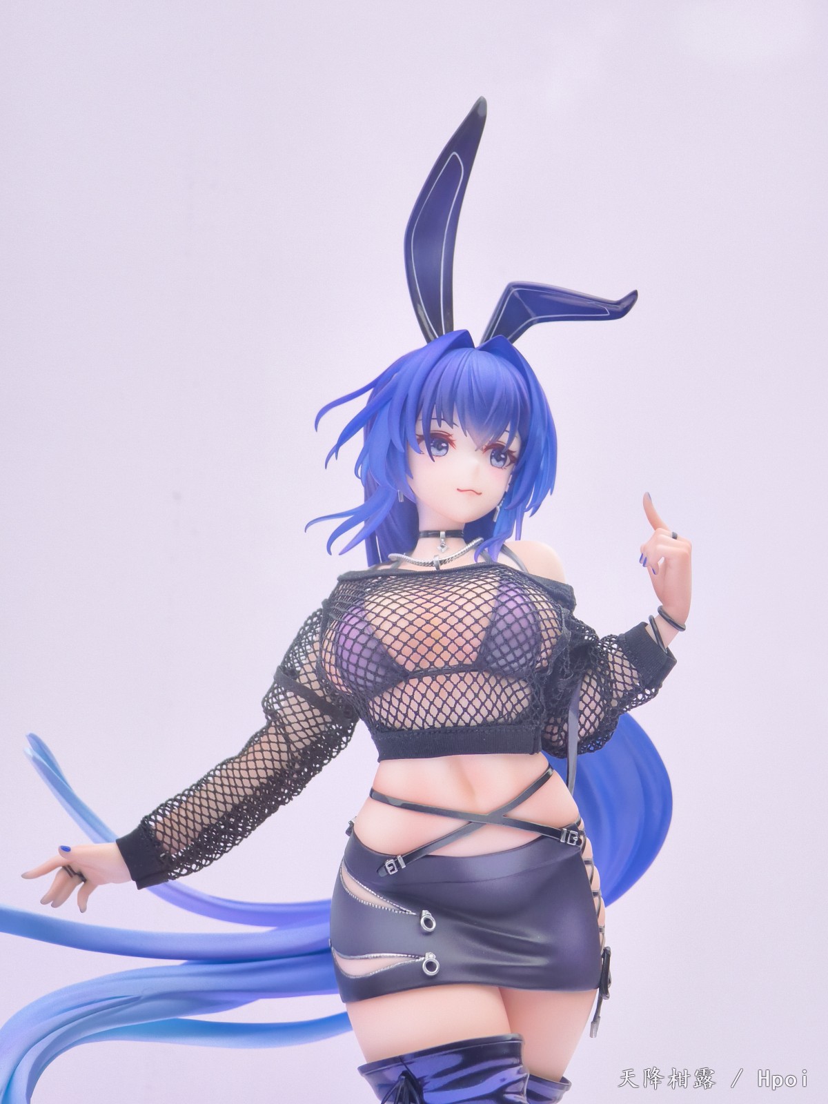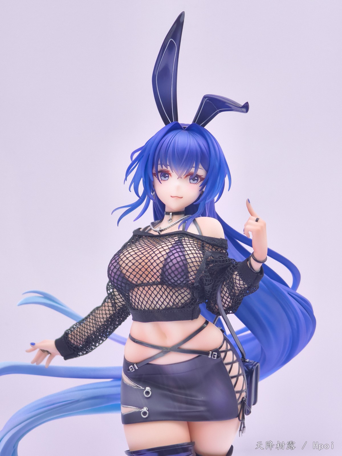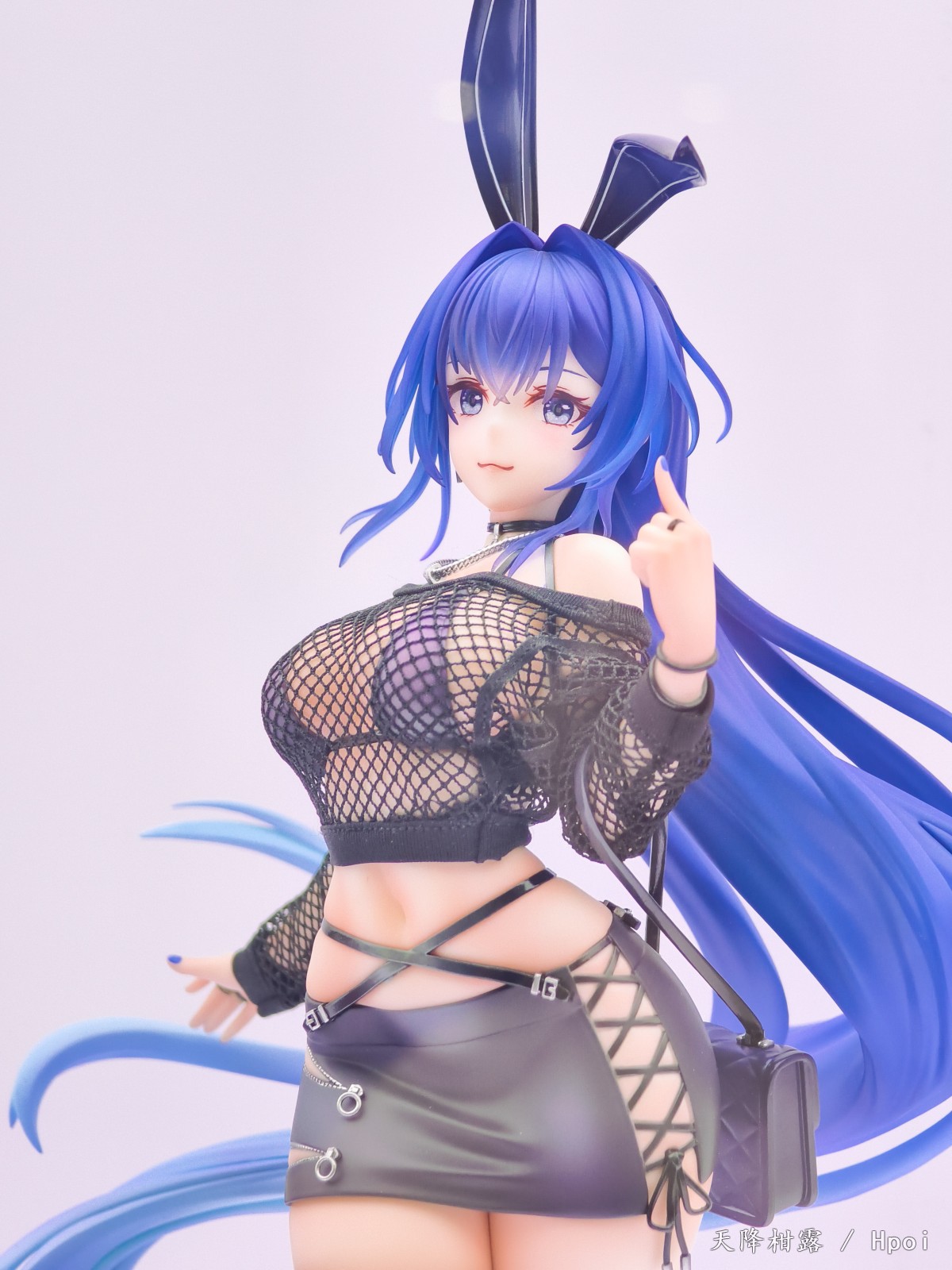 时尚衣装,飘逸长发。「花园」的兔耳、挎包与长靴采用珠光上色工艺,哑光质感的短裙,金属质感的拉链与搭扣,细节之处尽显潮流。轻透的前发刘海运用透明材质制作,上衣则使用真实网纹布料。多种材质配合不同上色工艺,将时尚与个性巧妙融合,尽显「花园」的独特魅力。