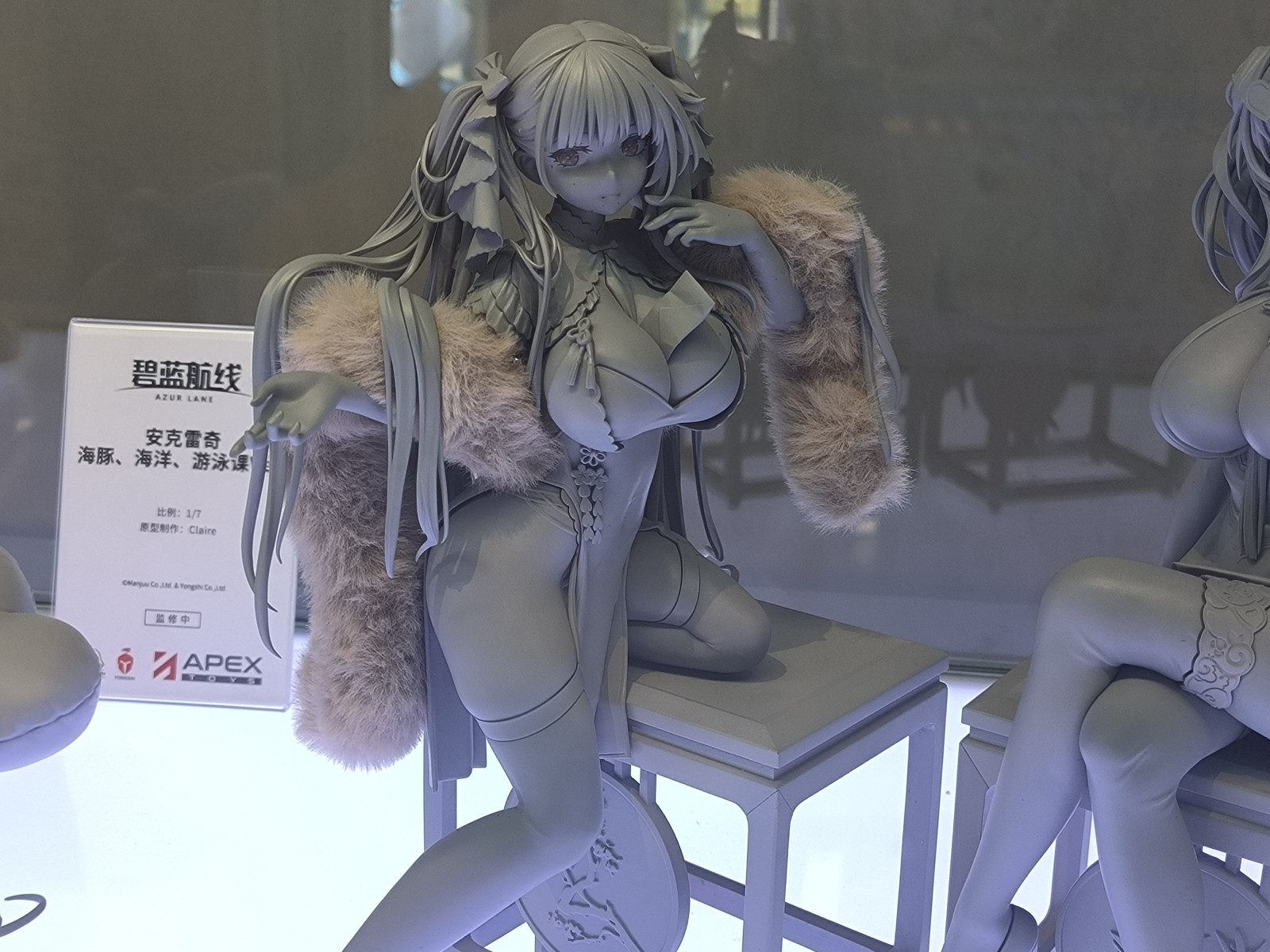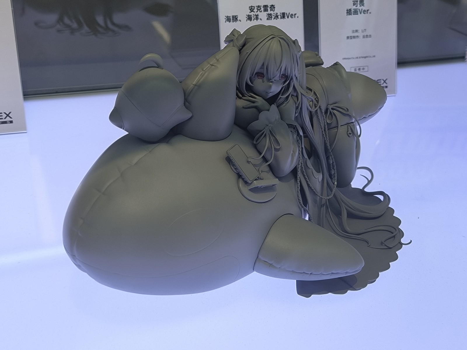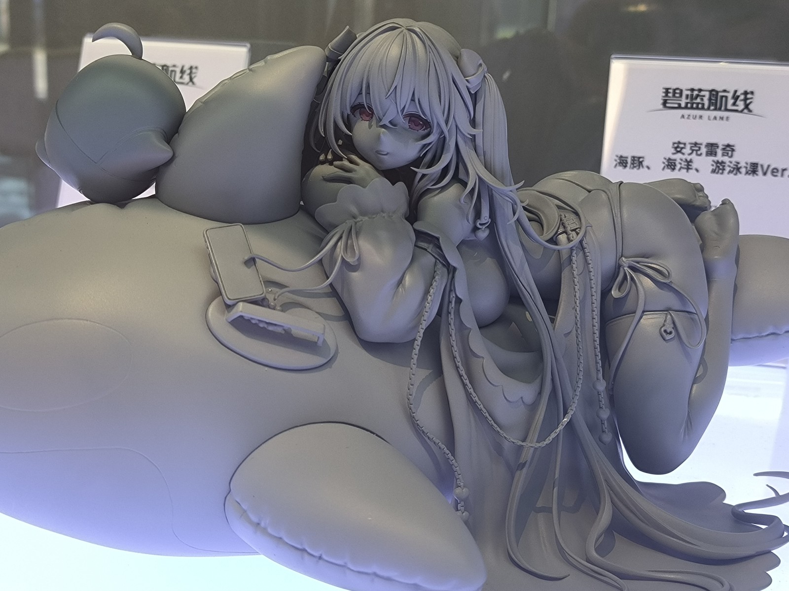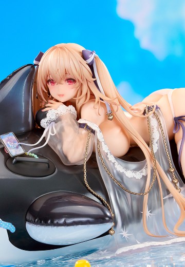 「安克雷奇」摇摇晃晃地趴在滑溜溜的虎鲸上,金色长发随意散落,轻透披肩随波摇曳。被水打湿的过膝袜隐约透出肉色肌肤,大量「珠光」点缀洁白皮肤,艳阳之下闪烁迷人光泽。