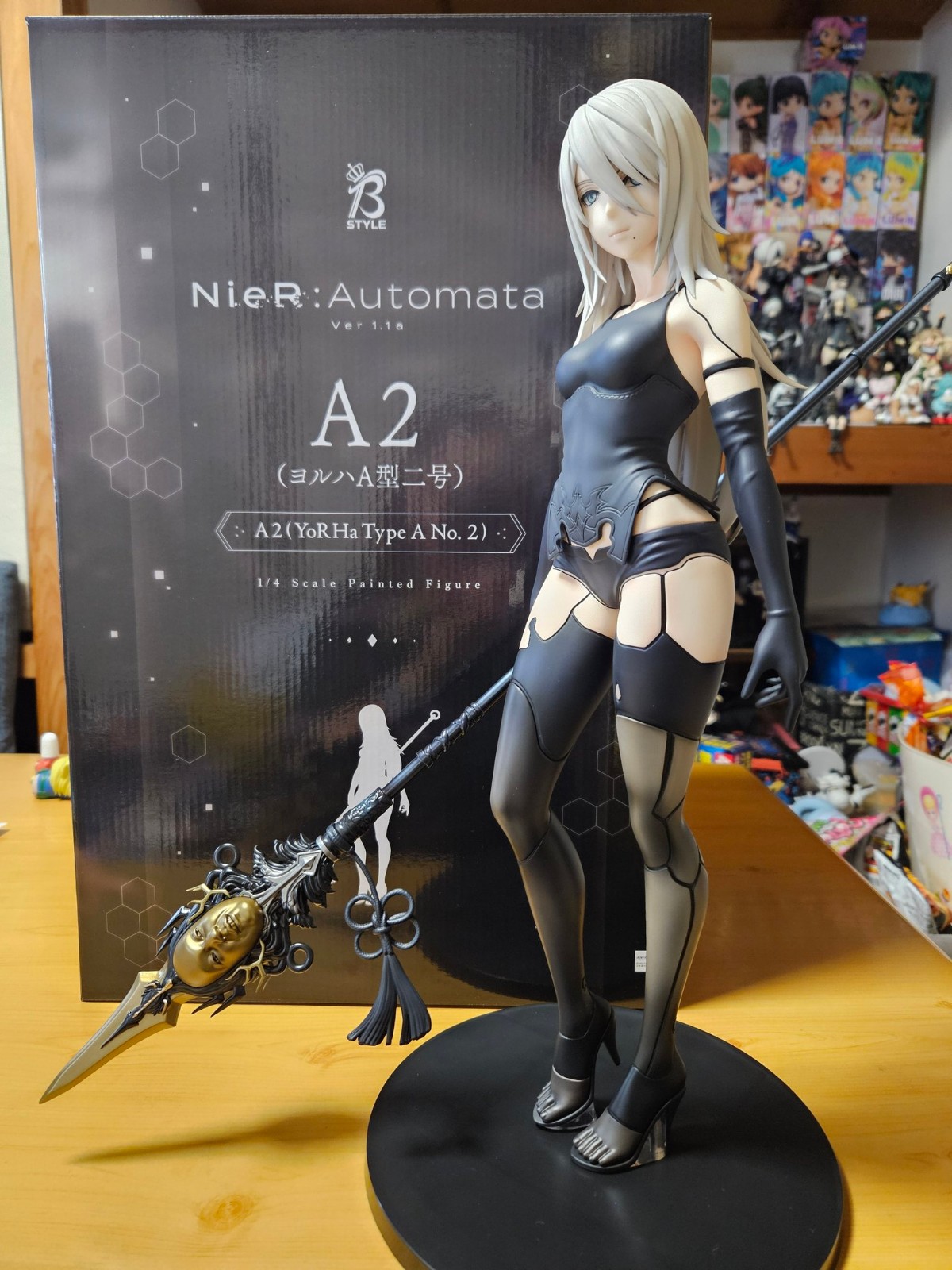 出自動畫《尼爾:自動人形 Ver1.1a》,將「A2(寄葉A型二號)」以1/4比例製成模型。以拿著漆黑傲慢的靜靜佇立的姿態化身為模型。戰鬥服不同材質的質感、漆黑傲慢的造型,以及指尖的動作都精心重現。敬請將靜靜地凝望的「A2」的孤獨之美,以1/4比例的壓倒性存在感鑑賞。搭配開放預購中的「2B(寄葉二號B型)」一同帶回家吧。