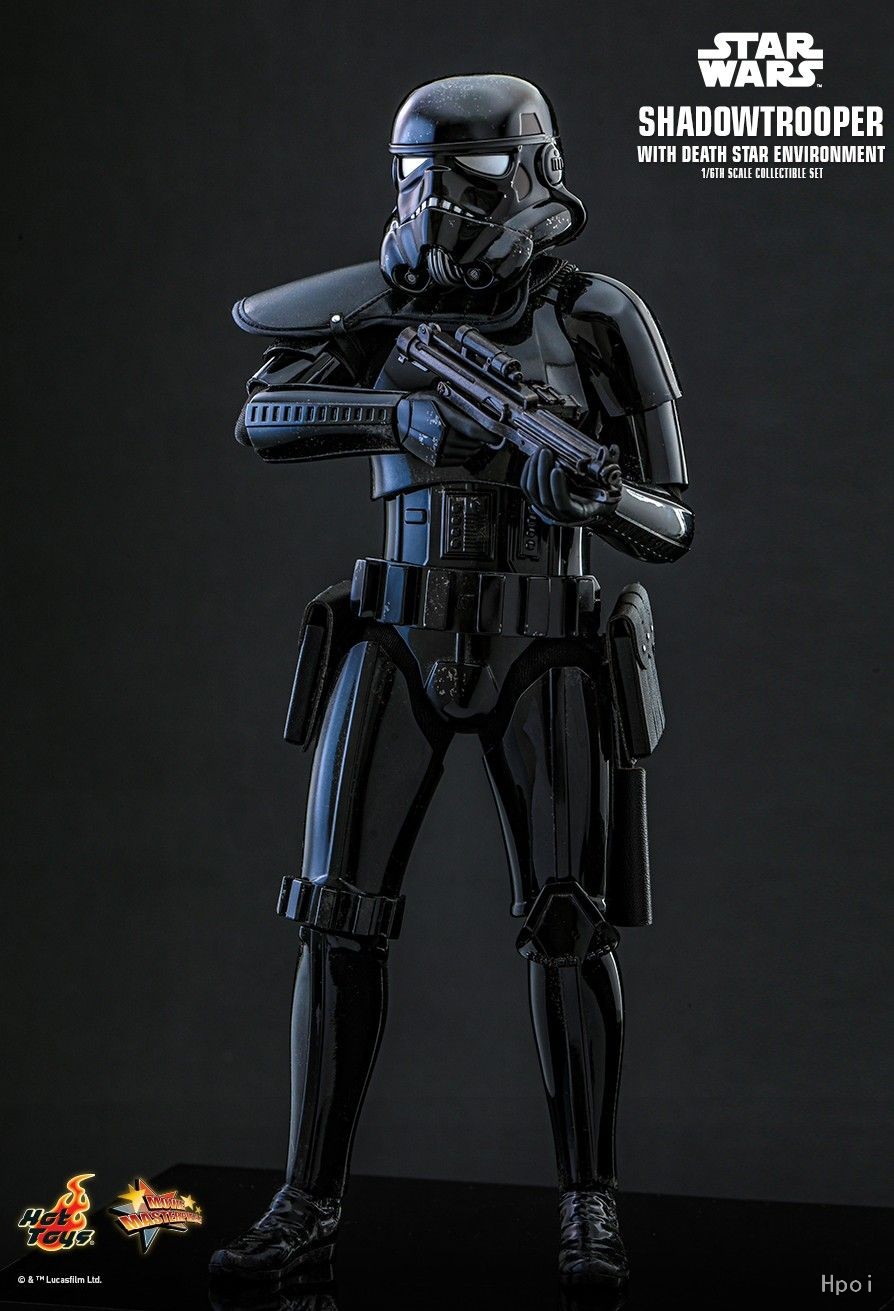 Hot Toys团队采用高约30cm、具30多处可动关节的人偶素体,以还原帝国精英兵种暗影部队作战时的大幅度动作姿态。盔甲外观以精湛的涂装技巧打造出独特的黑色光面效果,再经过特别处理,还原出逼真的旧化掉漆痕迹;头盔则精致呈现出多出细节位,如:银白色镜片、气体过滤器等;搭配饰仿皮革纹理的右肩膊护甲、装备腰带连两侧的真皮枪套、背面的热能榴弹、及一把标准武器装备E-11型号的镭射步枪和多对造型手掌。