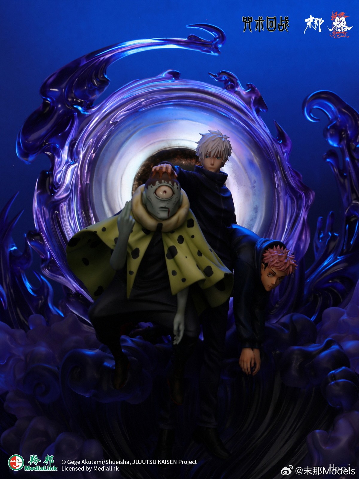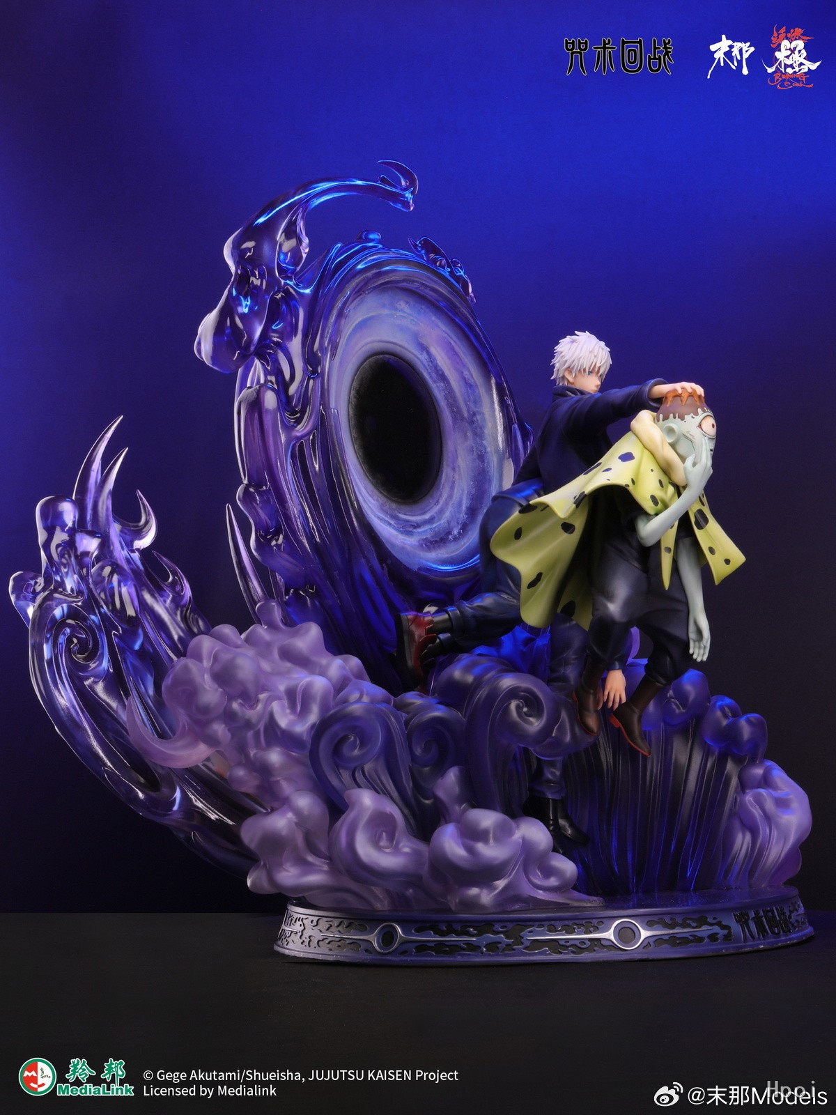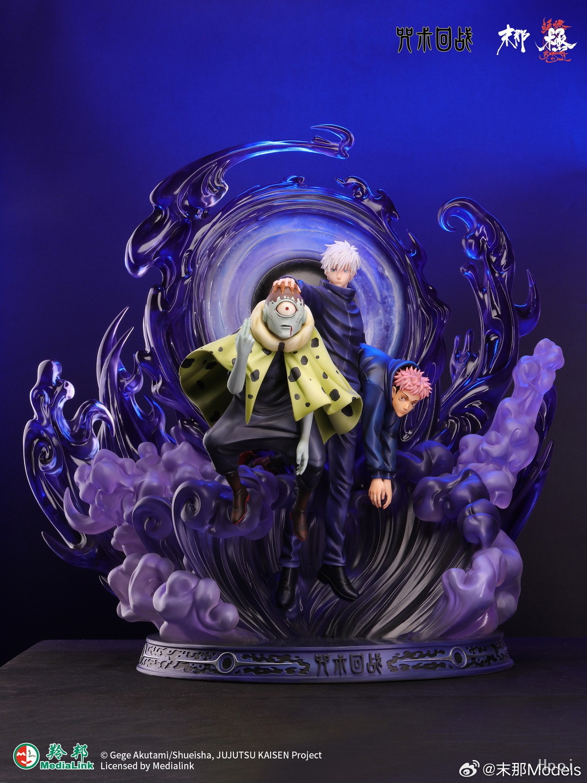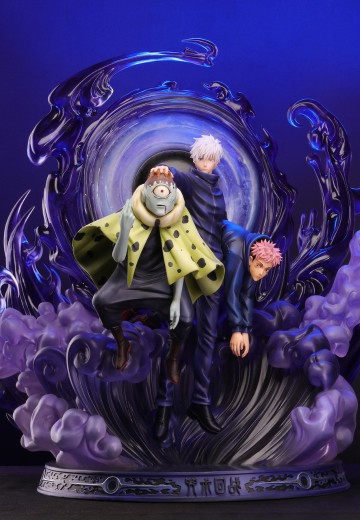 雕像造型选自动画第一季07集。拥有智慧的特级咒灵-漏瑚,自信的要去击杀五条悟。没想到漏瑚完全小看了五条悟,两人从开战战局就成一面倒,漏瑚被单方面吊打,五条悟甚至抽空带来了虎杖悠仁来旁观战斗。后使用领域展开但被五条悟的领域击败并被重创。 五条悟在本次战斗中第一次解除眼罩。并发动领域展开-“无量空处”。
