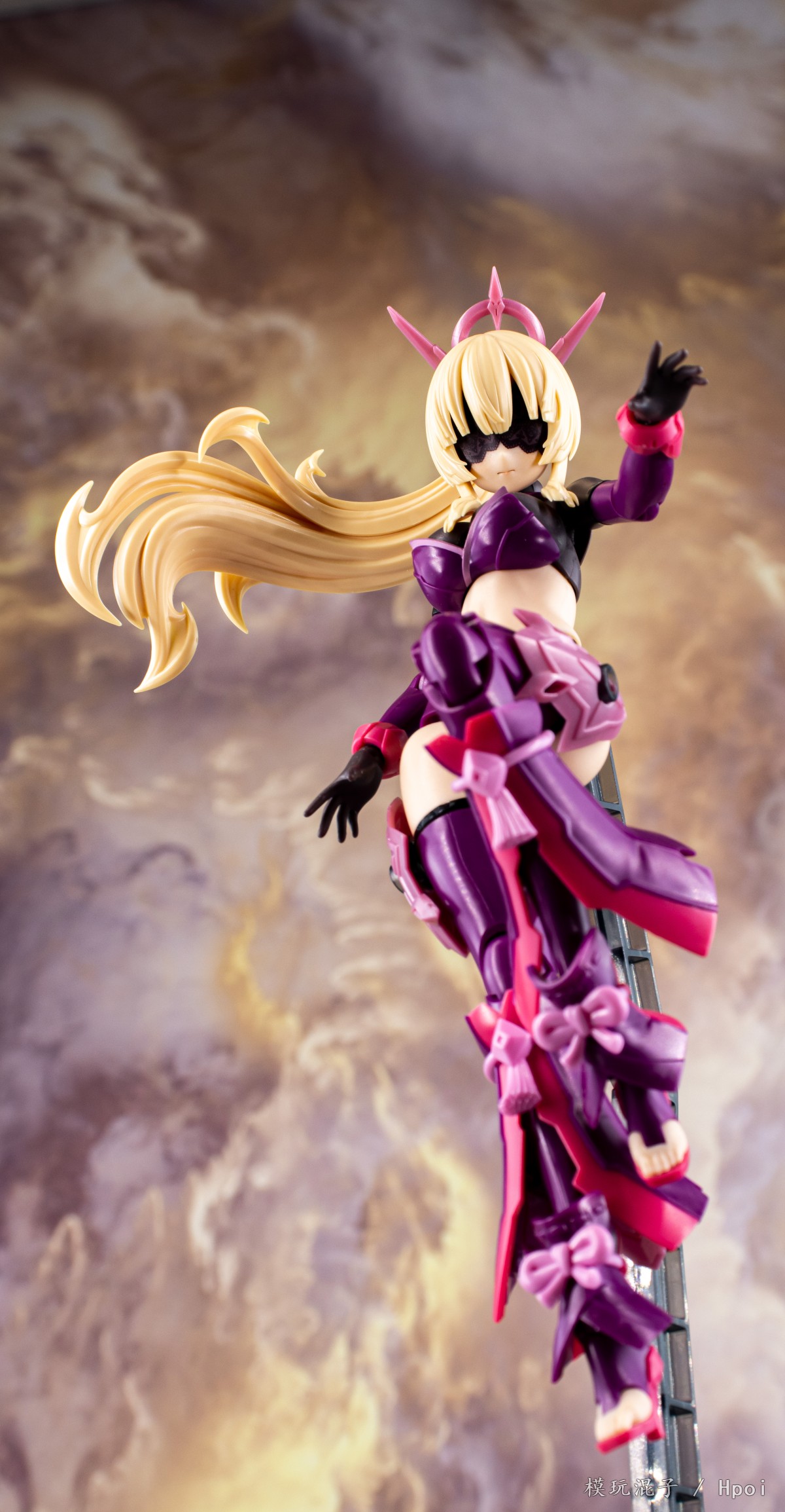 来自『女神装置』系列,天照的首款衍生机体『皇巫 天照 日蚀(Eclipse)』隆重登场!本作以日本神话「天岩户传说」为灵感,将【皇巫 天照 王权】改造成了充满暗黑色彩的配色版本。