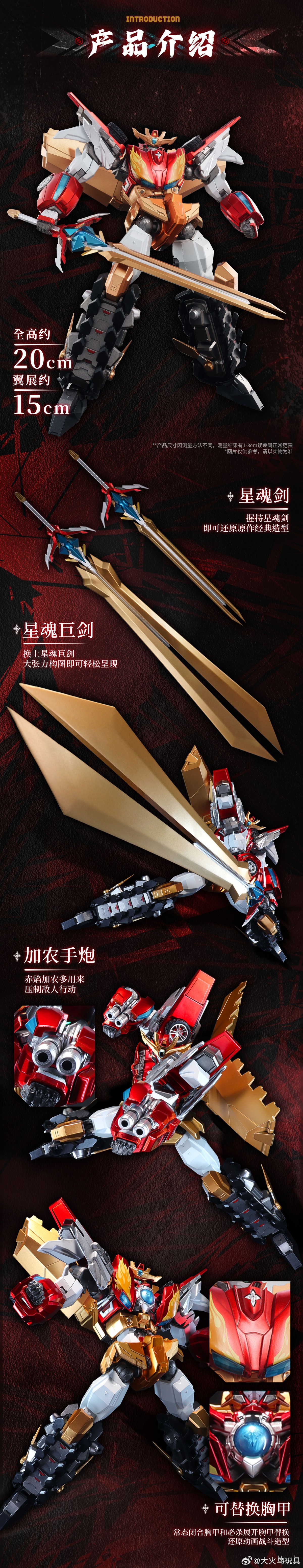✧附带星魂剑、星魂巨剑、加农手炮、核心展开胸甲等配件,完美再现原作中的各种必杀技动作和经典造型。