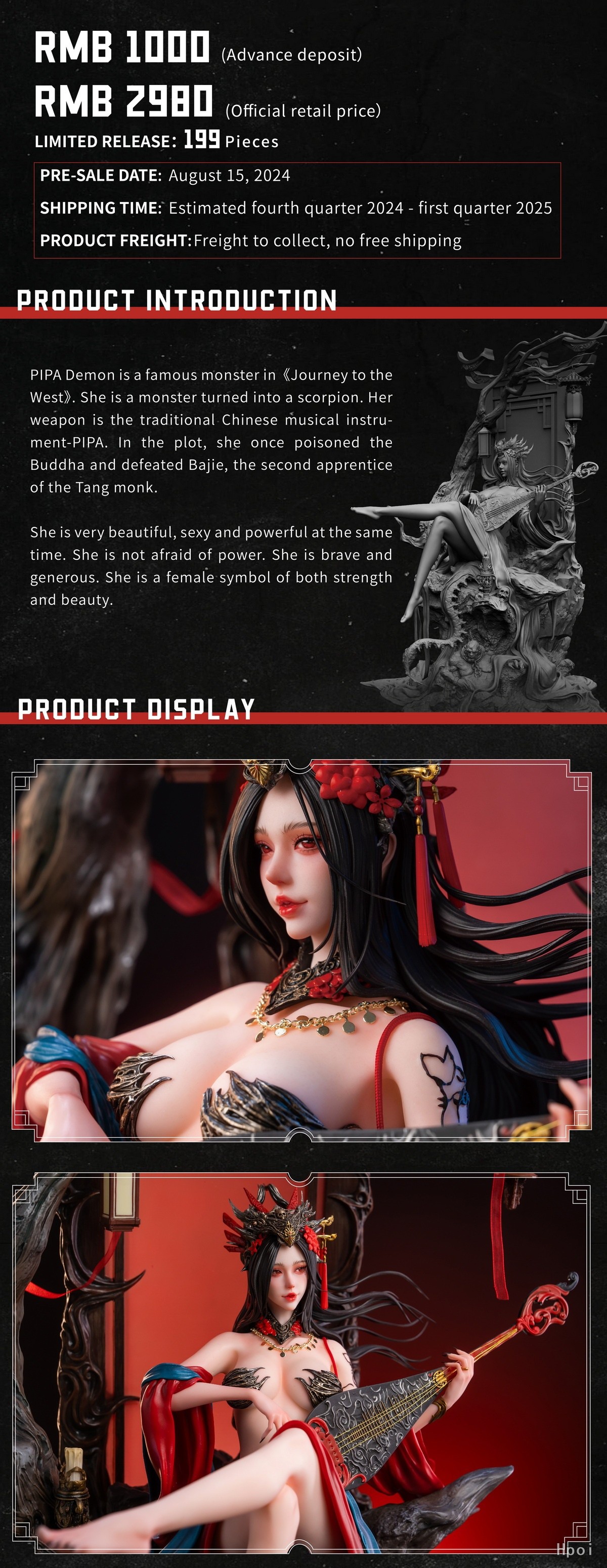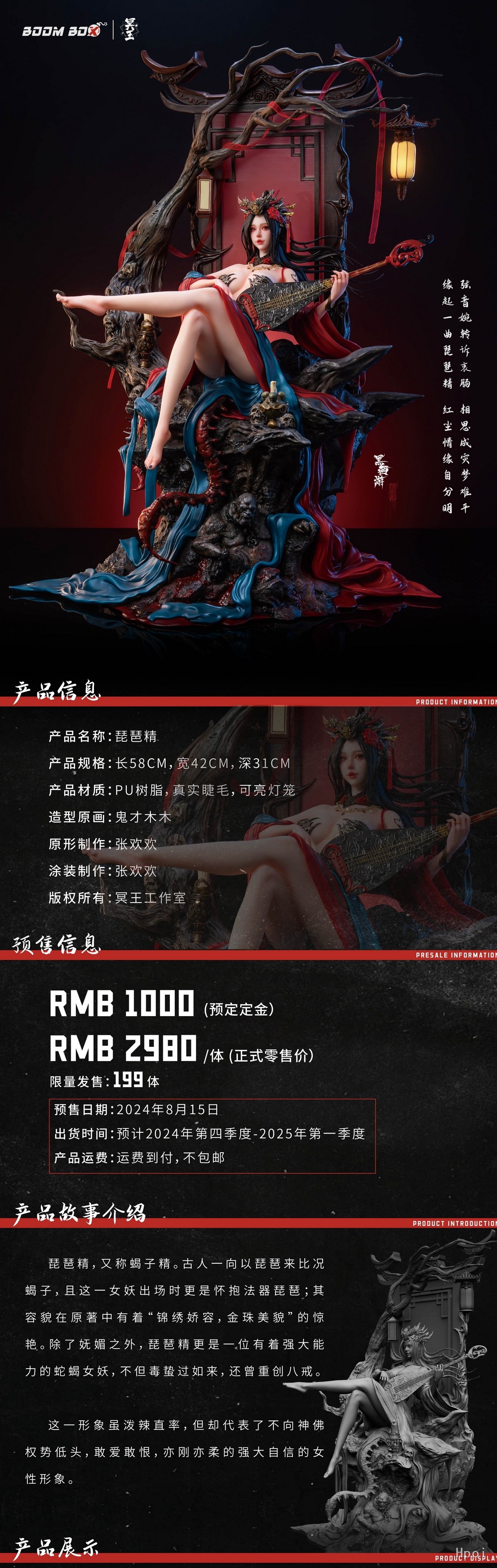 中文名称:黑西游 琵琶精 雕像