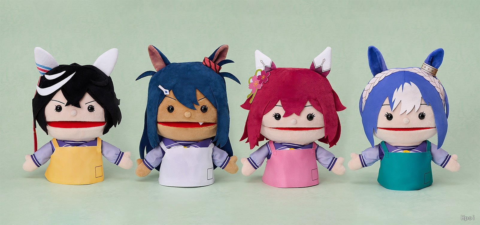 《賽馬娘Pretty Derby》推出開口手偶!配合2024年的日本黃金週企劃「GOCHI WEEK(盛宴週)」公開,以其溫馨的動作及超級可愛的表情造成話題的《GOCHISO樣》MV。將於MV中登場的櫻花千代王、葛城榮主、菱亞馬遜與西沙里奧的開口手偶,以真實版的約1/2尺寸重現成家庭版!仿照實際MV中出現的手偶設計,雖然簡單但表情及特色洋溢著漂亮的效果!圍裙為也能自由拆穿的樣式。大家一起開口跳GOCHISO樣吧!