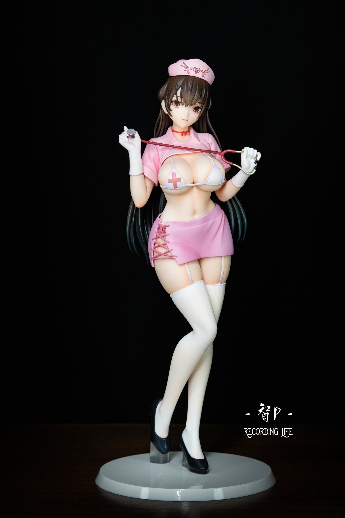 套装内容:本体、护士帽、短裙、底座(护士帽和短裙可随意拆装)。