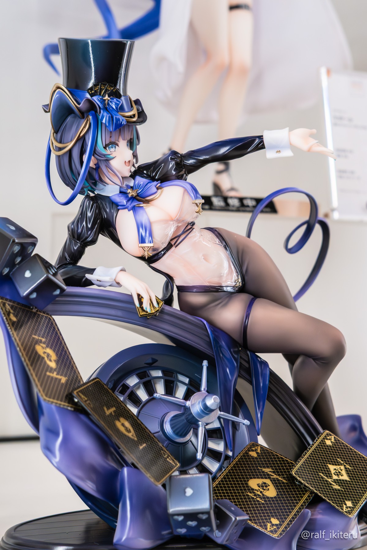 出自超人氣手機遊戲《碧藍航線》,柴郡以“絢爛夜色”姿態化身為模型登場!柴郡身穿擁有透明感的緊身套裝,將可愛與性感兼具的魅力表現得淋漓盡致。透過透明材質的服裝和精緻的塗裝,細膩重現若隱若現的肌膚質感。包覆在光滑黑絲襪中的美麗雙腿,更加襯托出她優雅的一面。台座以插畫為設計靈感,散布著撲克牌、骰子和輪盤等元素的豪華規格。高帽和從背後台座出現的饅頭們,為整體增添玩心。另外,還附替換用瀏海零件、左手零件和跳出饅頭的高帽,可重現魔術表演的場景!敬請將兼具可愛和性感的「柴郡 絢爛夜色Ver.」帶回家收藏吧!