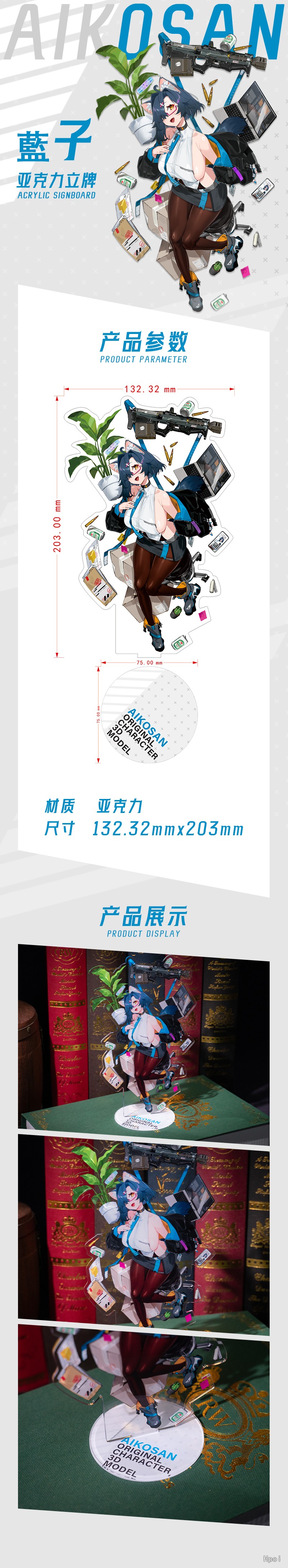 主体:203x132.32mm 底座:75×75mm 立牌厚度:3mm