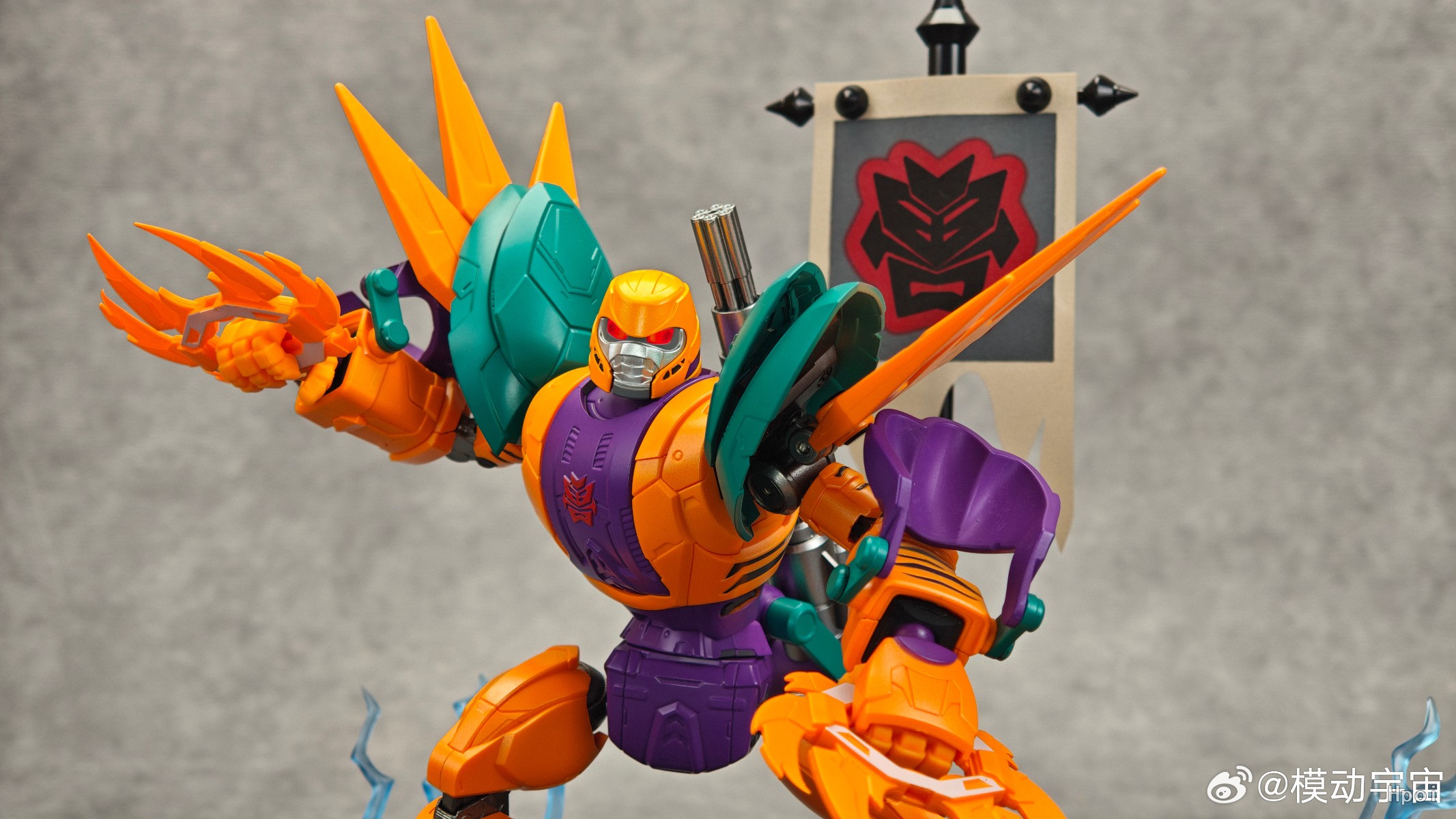 产品内容1.地台x1 2.旗杆x13.旗帜x1 4.造型手x25.雷霆殿令牌x1 6.装备收纳支架x17.武器x2 8.后备隐藏能源x19.眼部磁控灯组x1 10.说明书x1【初回特典】特典1:武器特效件特典2:能源水晶(内置发声装置)