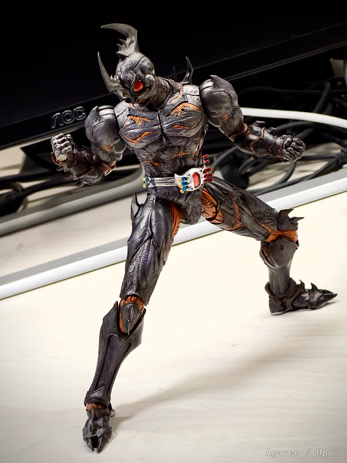 细腻纹路,还原生物甲壳质感–虎甲人设计参照大王虎甲虫的坚硬外壳,人偶制作上同样刻划出细致纹理;搭配腰带「觉醒」及形态转换红、蓝药水配件,忠实呈现原作设定,细节满载!