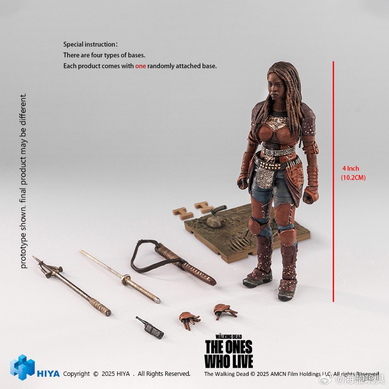 这款全新EXQUISITE MINI系列1/18比例 米琼恩 可动人偶全高约10.2CM,以《行尸走肉:活着的人》剧中形象为原型,还原剧中米琼恩的标志性面部特征与凌厉眼神。身着极具末世风格的生存服,兼具韧性与力量感。采用1/18比例高可动素体设计,全身配置多个关节,她标志性的武士刀及刀鞘均有附属,额外附属战斗手杖助力玩家重现米琼恩多样的流畅战斗姿势。对讲机搭配额外一对替换手型适配更多战斗与协作的持握场景,让您轻松打造米琼恩挥刀斩尸、英勇作战的经典造型。 此外,产品将在四款还原遍布断指残骸的泥地场景底座中随机附赠一款,让您能体验最刺激的行尸血潮!