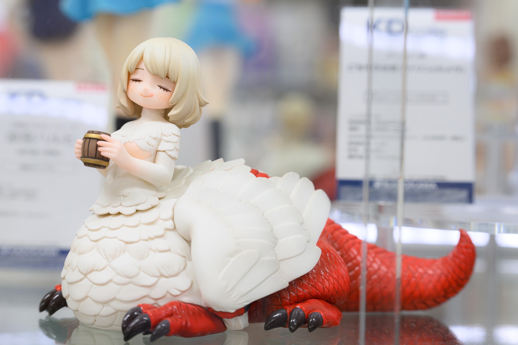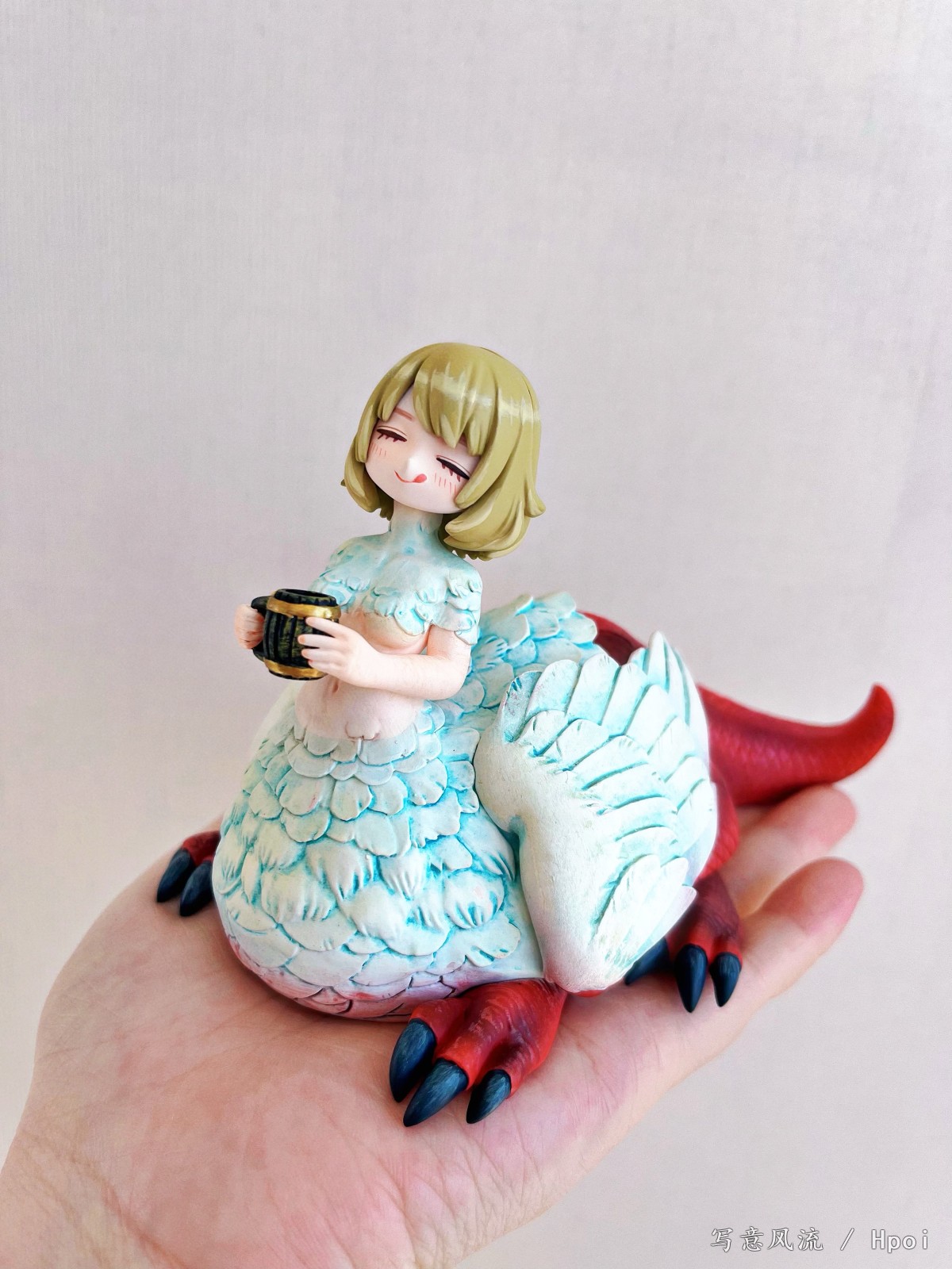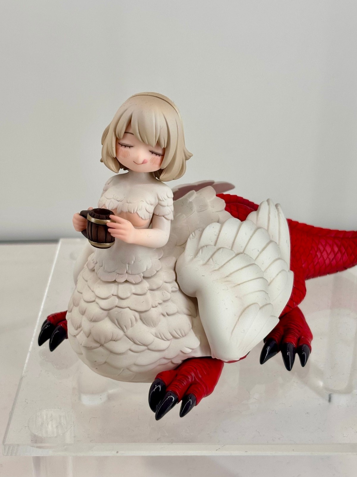 出自超人氣電視動畫《迷宮飯》,法琳(奇美拉)化身為無比例模型!以Shibi悉心創作的GK原型為基礎,將造型與色彩煥然一新製作成PVC模型完成品!連細節都十分講究,是粉絲必看的傑作。 雖然擁有柔軟蓬鬆的羽毛與堅硬的龍型手腳,但被美味迷宮料理擄獲而感到滿足,法琳(奇美拉)泛紅臉頰與鼻頭的動作十分可愛。大大的尾巴看起來也很開心的樣子。 尺寸剛好可以捧在手中,非常討喜。她看起來彷彿吃飽後就會安穩地入睡了?!敬請將肚子填飽大滿足的法琳(奇美拉)加入你的收藏吧!