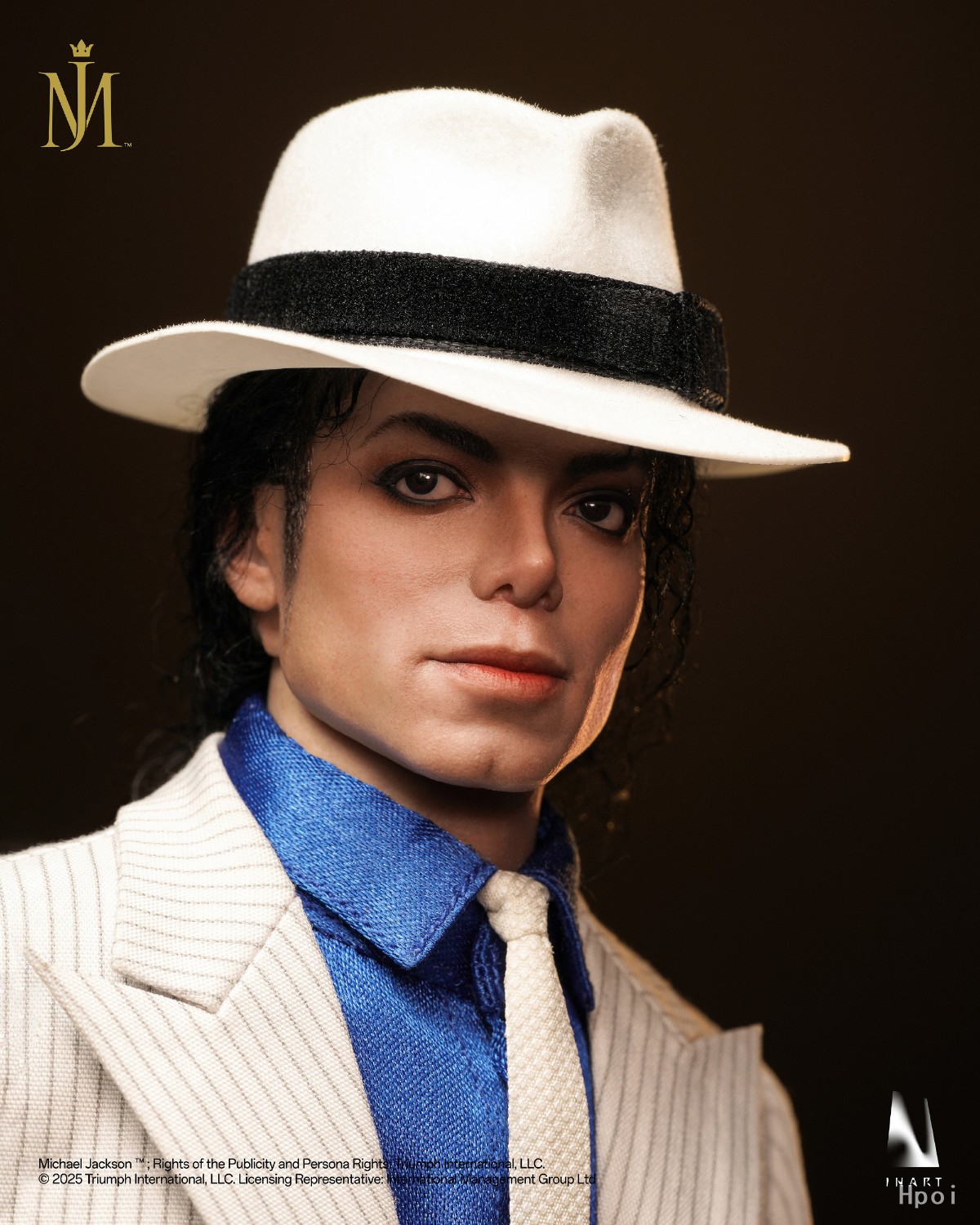 经过对历史影像的深度考究与精心雕琢,INART名人堂系列再度为大家复刻迈克尔・杰克逊的经典形象。作品精准还原了迈克尔・杰克逊在《犯罪高手》表演中的标志性造型 —— 从定格舞台张力的舞姿,到礼帽的倾斜弧度、皮鞋的光泽质感,每一处细节都在努力唤醒那个传奇舞台上的高光时刻。