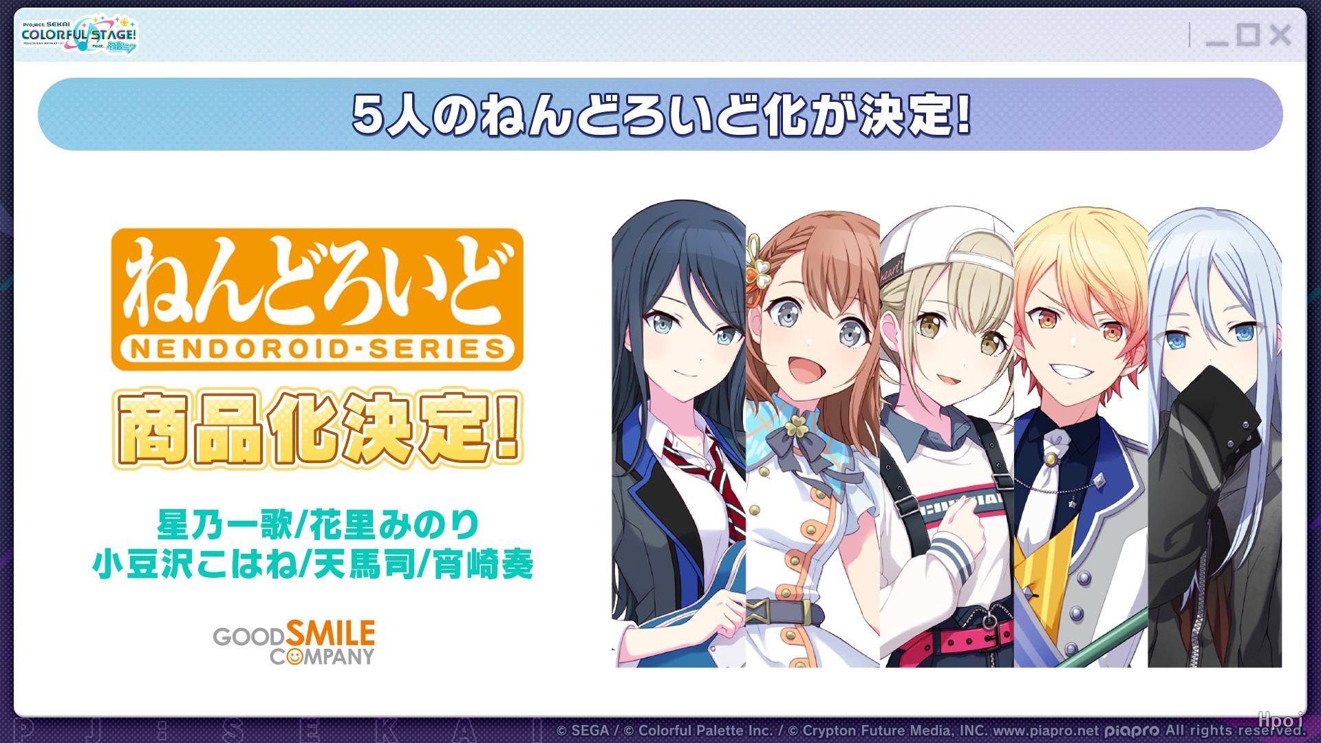 出自iOS/Android節奏&冒險遊戲《世界計畫 繽紛舞台! feat. 初音未來》,「25點,Nightcord見。」中負責作曲的「宵崎奏」 化身為黏土人!・表情零件:「呆愣臉」、「笑臉」、「喘息臉」・配件:「耳機」、「替換用手部零件」等