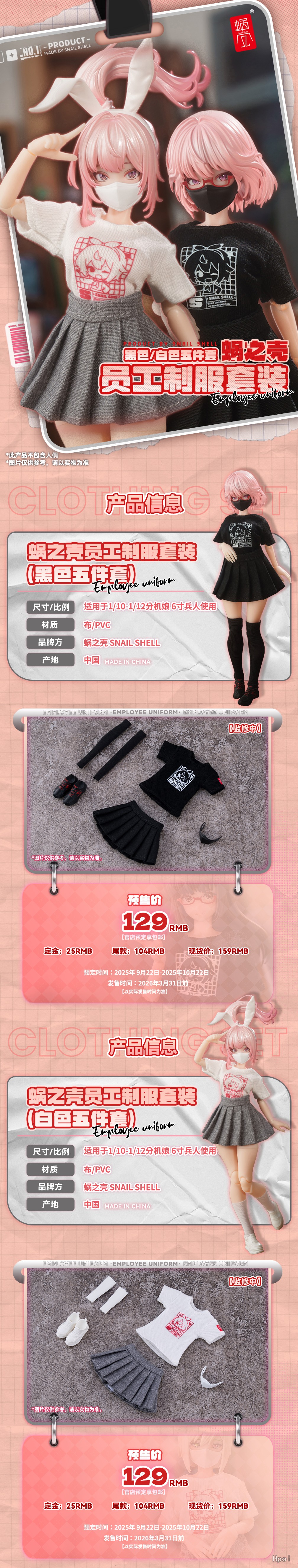 中文名称:蜗之壳员工制服套装(黑/白五件套)