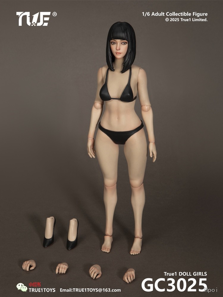 配件清单:滴胶可动眼女头雕一个 PVC头发套一个 女素体一套 比基尼泳衣一套 平脚丫一对 含脚高跟鞋一对 自然手型一对 持枪手型一对 握刀手型一对