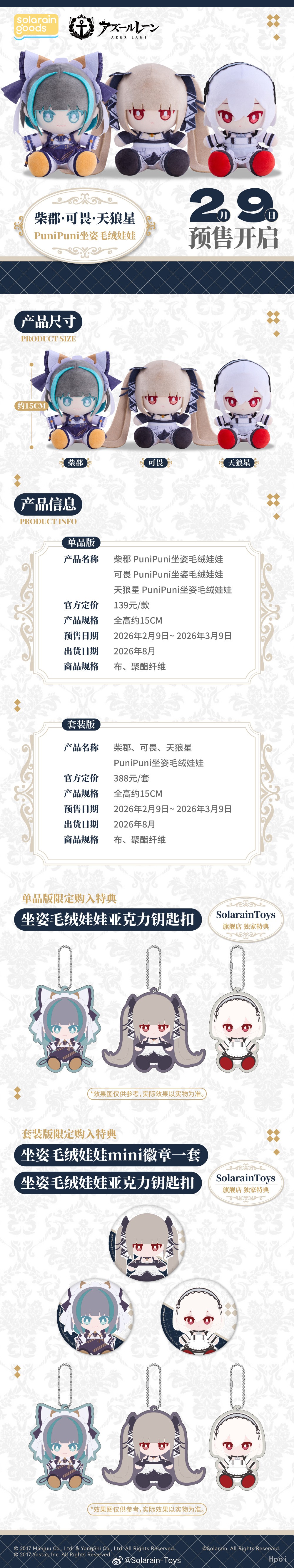 套装款附赠 -限定特典-【柴郡&可畏&天狼星PuniPuni坐姿毛绒娃娃】mini徽章一套